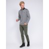 • Col classique, pointes libres, zip contrastant à inscription fantaisie
