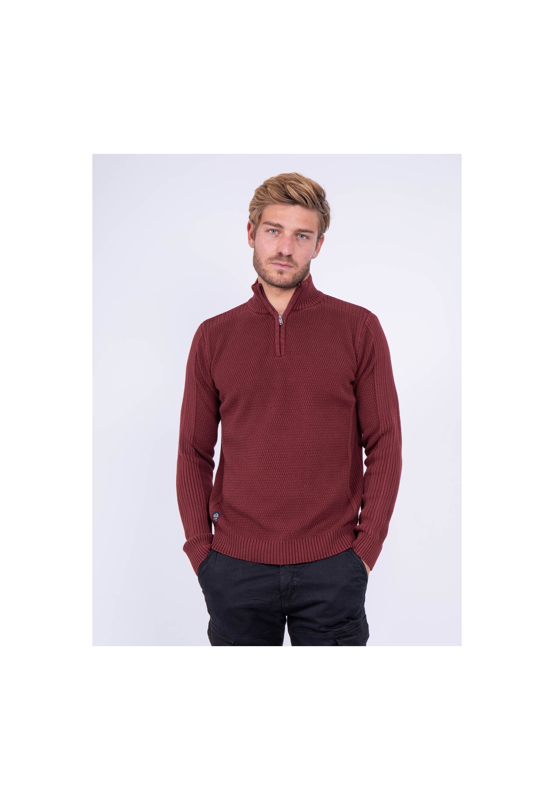 Détails produit Col montant zippé Jeu de mailles  Bords côtes col, base et poignets  Composition et entretien 100% coton Lavage en machine à 30° Conseils taille Le mannequin mesure 185... En savoir plus >
