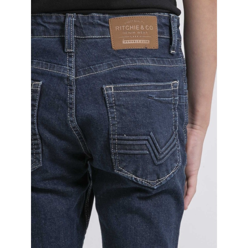 Ce jean bleu brut Ritchie jeans rejoint notre collection de pièces en denim confectionnées avec soin. Décliné dans un bleu foncé très élégant, il offre une coupe ajustée avec un délavage très léger. La broderie Ritchie jeans discète sur sa poche ticket de métro ajoute une touche d'originalité à l'ensemble. Pièce phare d'un look casual, ce jean pourra suivre vos garçons saison après saison.