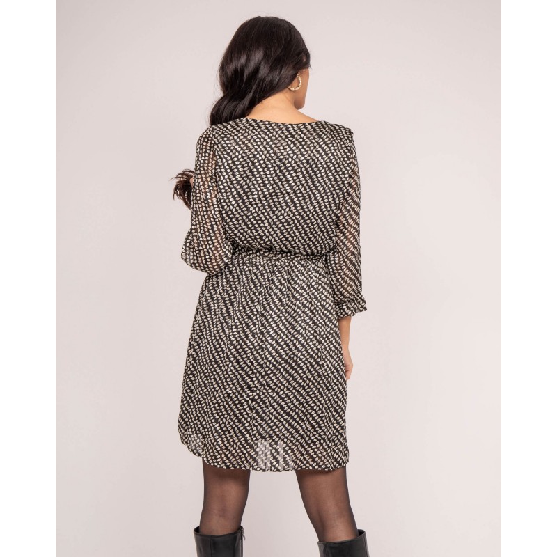 Cette robe courte Dona Lisa allie élégance et aisance, grâce à sa matière vaporeuse. Notre Maison crée un véritable jeu de volume à travers une encolure cache-coeur et des manches bouffantes qui se prolongent sur des poignets élastiqués. La pièce revêt un motif feuilles en all-over. Habillez-vous en un clin d’œil en accordant cette robe avec une paire de bottines.
