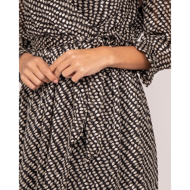 Cette robe courte Dona Lisa allie élégance et aisance, grâce à sa matière vaporeuse. Notre Maison crée un véritable jeu de volume à travers une encolure cache-coeur et des manches bouffantes qui se prolongent sur des poignets élastiqués. La... En savoir plus >