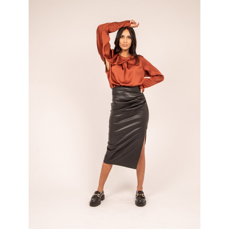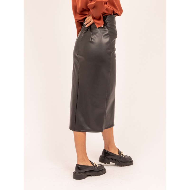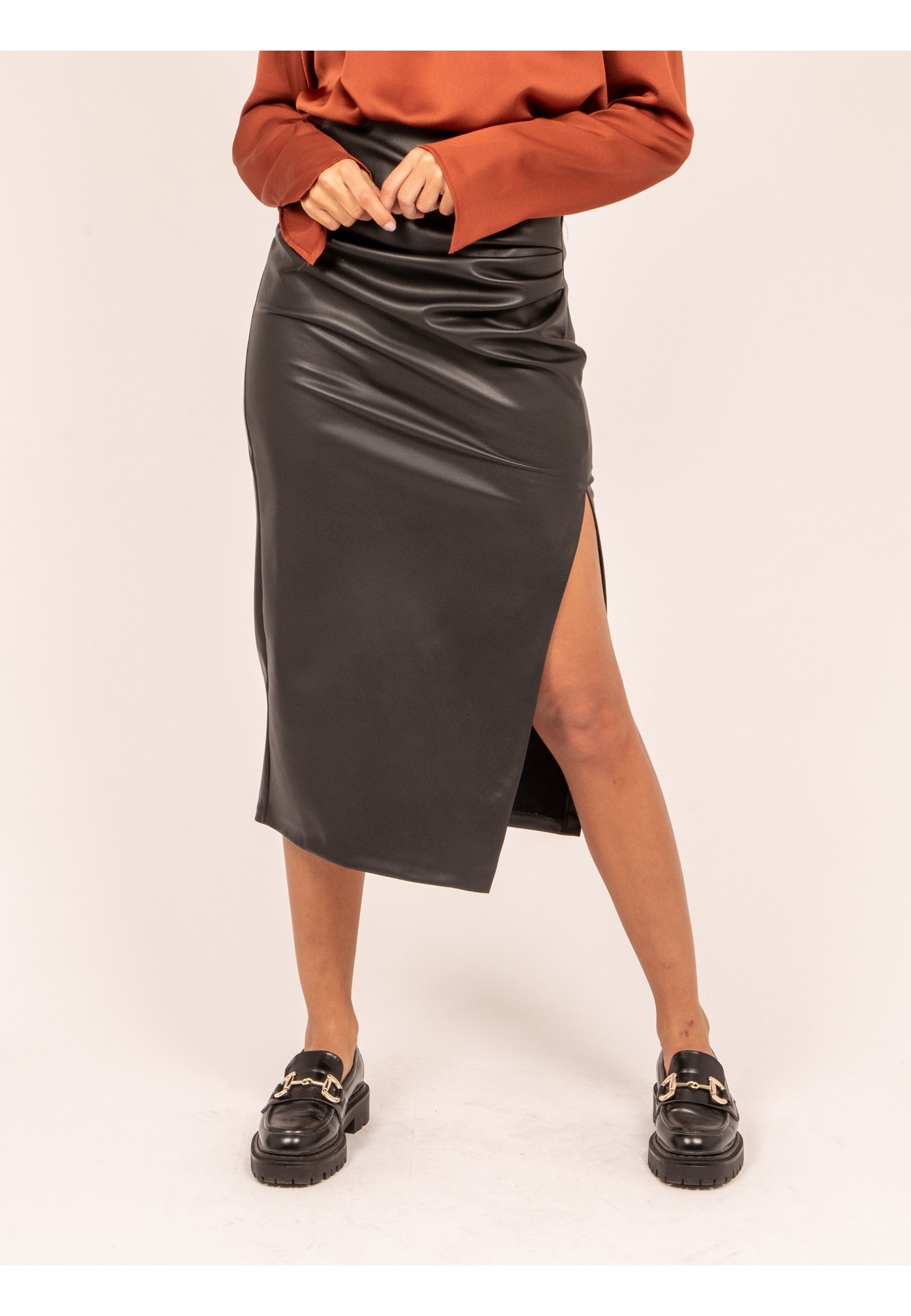 Cette jupe Dona Lisa, confectionnée en simili tendance, offre un tombé glamour et un style épuré. Sa fente sur le côté dévoile la jambe dans un effet sensuel, accentué par un drapé le long des hanches. Misez sur un ensemble féminin ultramoderne en associant cette jupe à une maille colorée et une paire de boots.