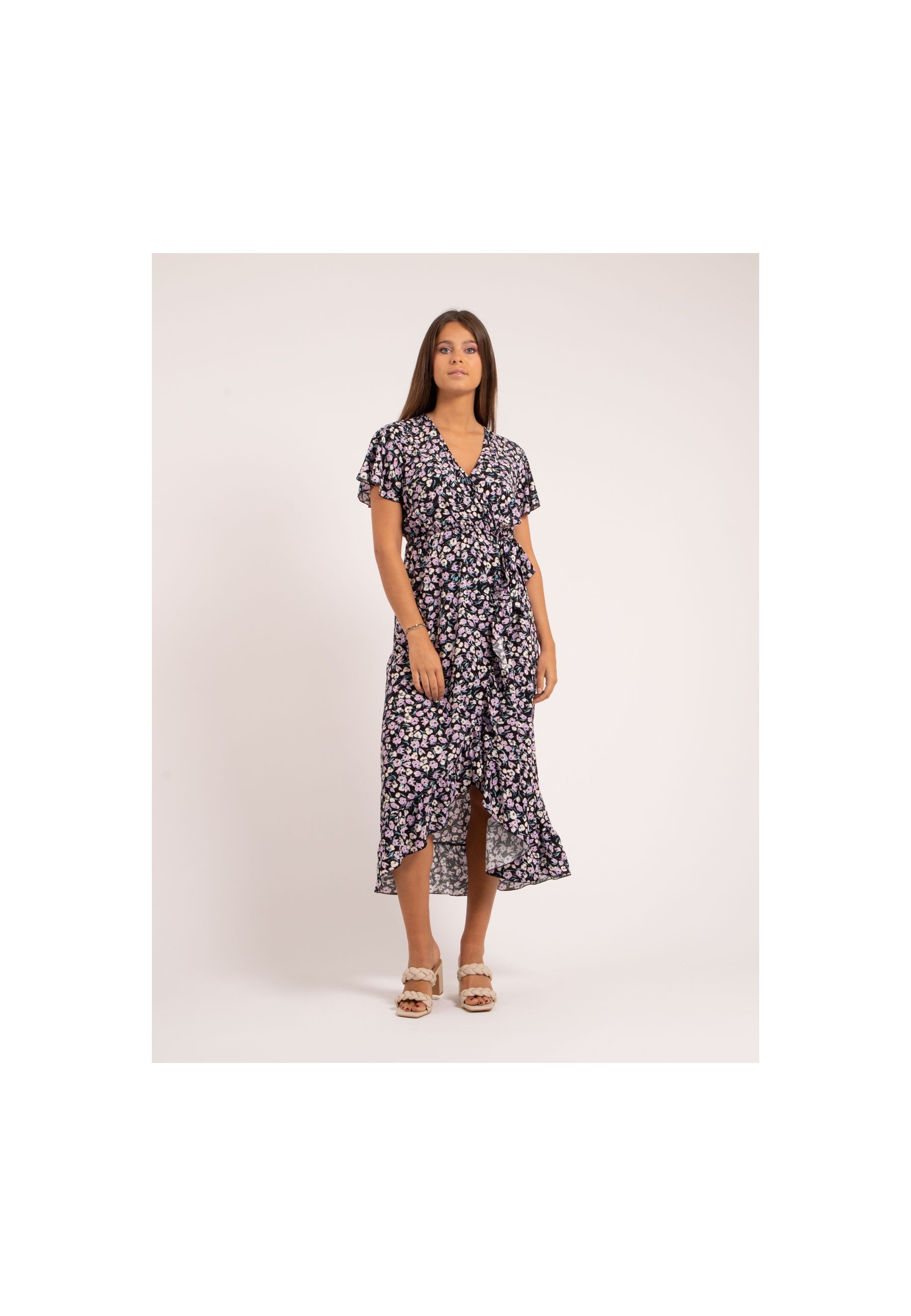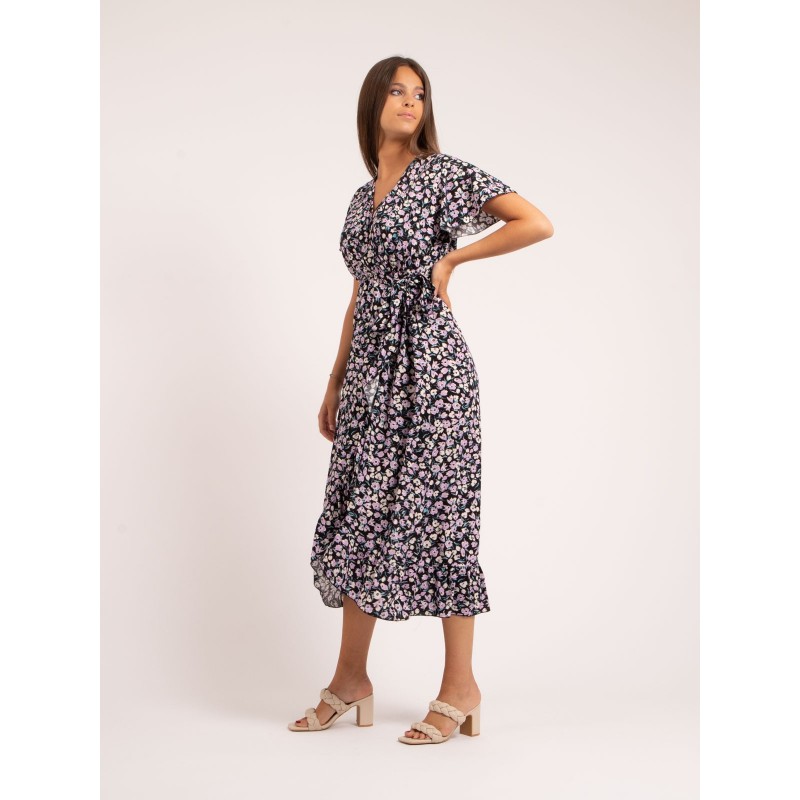 Cette robe longue Dona Lisa apportera une dose de fraîcheur dans votre dressing. Sa coupe portefeuille revisite notre encolure en pointe intemporelle, qui met en valeur de nombreuses silhouettes. L'ensemble est rehaussé de petites fleurs rétro aux tons contrastés, déclinées en all-over sur le modèle. Harmonisez cette robe cache-cur avec une paire de sandales pour un look féminin et tendance en toute simplicité.