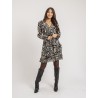 Cette robe courte Dona Lisa allie élégance et aisance, grâce à sa matière vaporeuse. Notre Maison crée un véritable jeu de volume à travers une encolure cache-cœur et des manches longues qui se prolongent sur des poignets élastiqués. Habillez-vous en un clin d’œil en accordant cette robe au motif floral, esprit babydoll, avec une paire de bottes.