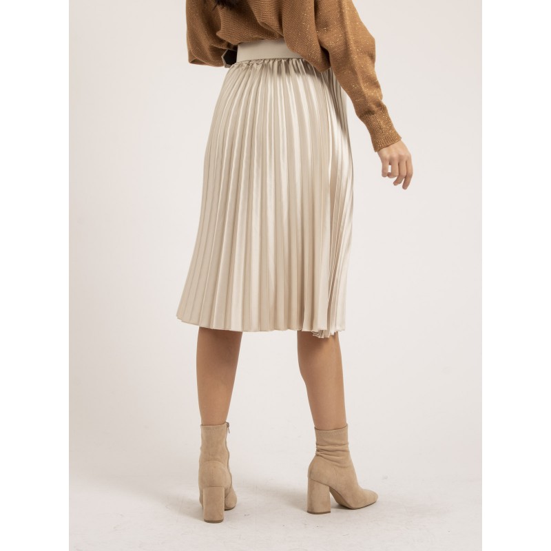 Jupe mi-longue plissée satin et ceinture XOLIA