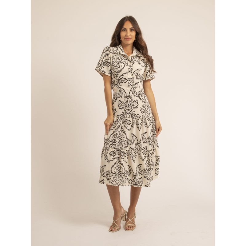 Cette robe midi Dona Lisa s'impose comme une version originale de la robe chemise. Soulignée par une rangée de petits boutons le long du devant, la pièce s'évase dans le bas et gagne en volume par des rangées de volants. Composez une tenue... En savoir plus >