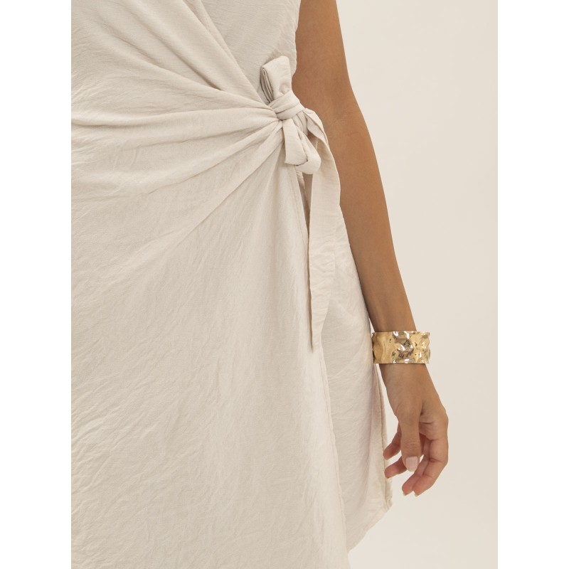 Sublimez votre garde-robe estivale avec cette robe au design élégant et intemporel. Sa coupe portefeuille flatte la silhouette tout en offrant un confort optimal. Avec des détails noués sur le côté et une texture fluide, elle allie sophistication et légèreté pour vos journées et soirées ensoleillées.