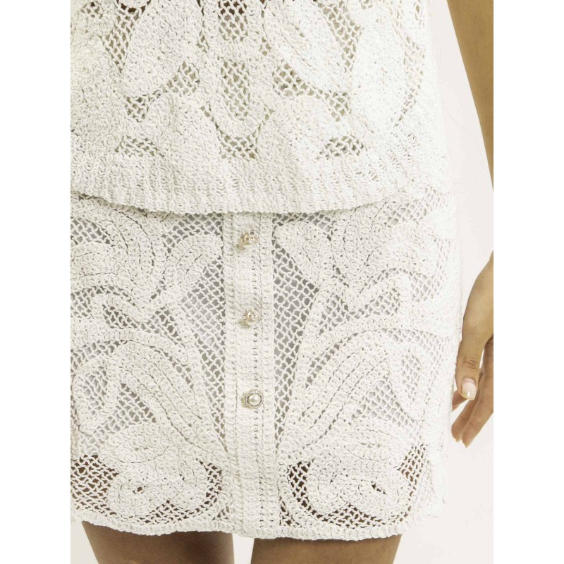 Cette jupe en crochet respire l'élégance bohème et la féminité, parfaite pour la belle saison. Sa texture ajourée et son motif délicat offrent un charme authentique et léger, idéal pour sublimer vos tenues estivales.