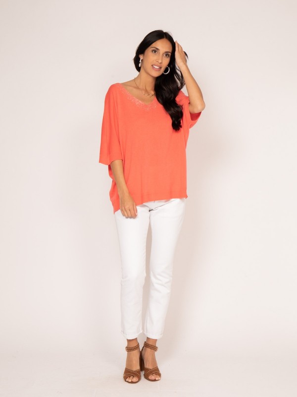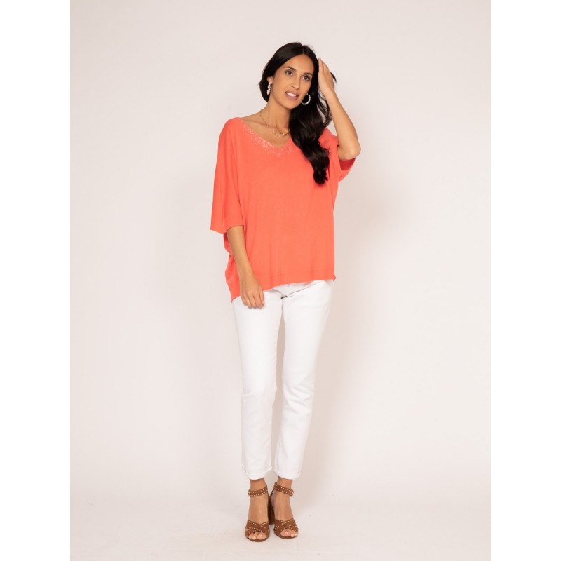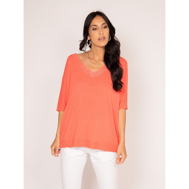 Dona Lisa revisite le pull d'hiver dans un esprit raffiné. La pièce s'adapte aux températures estivales à travers des manches 3/4, accompagnées d'un large col V décolleté. Vous pourrez enfiler ce pull long en toute simplicité avec un pantalon de... En savoir plus >