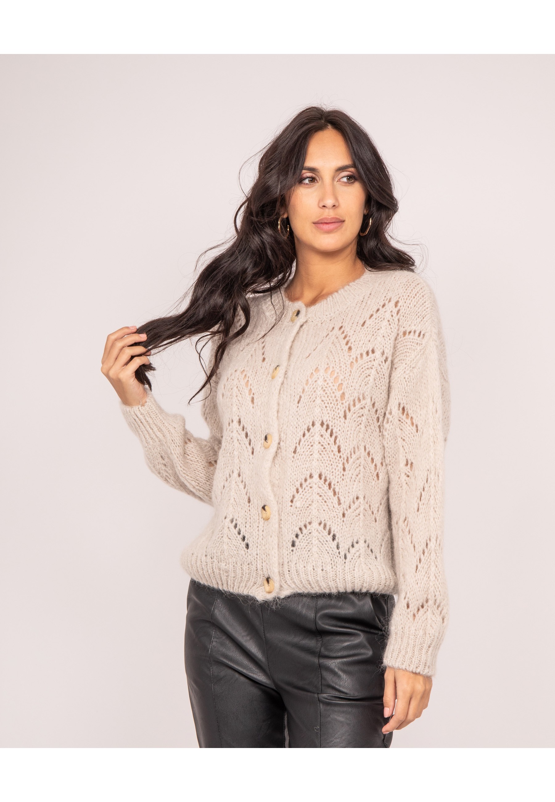 Ce cardigan Dona Lisa s'inscrit dans la tendance tricot de la saison, tout en gardant un esprit moderne et citadin. Particulièrement douce, son étoffe chaleureuse en laine et mohair mélangés présente des détails fantaisie sur l'ensemble, et est agrémentée de boutons élégants. Adoptez une allure unique en harmonisant ce cardigan avec un pantalon en denim et une paire de bottines.