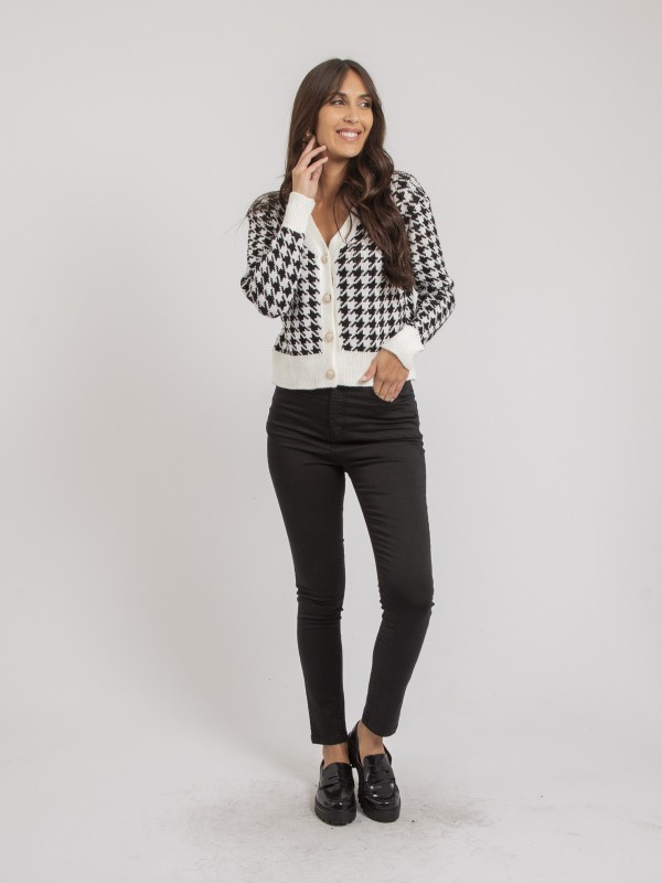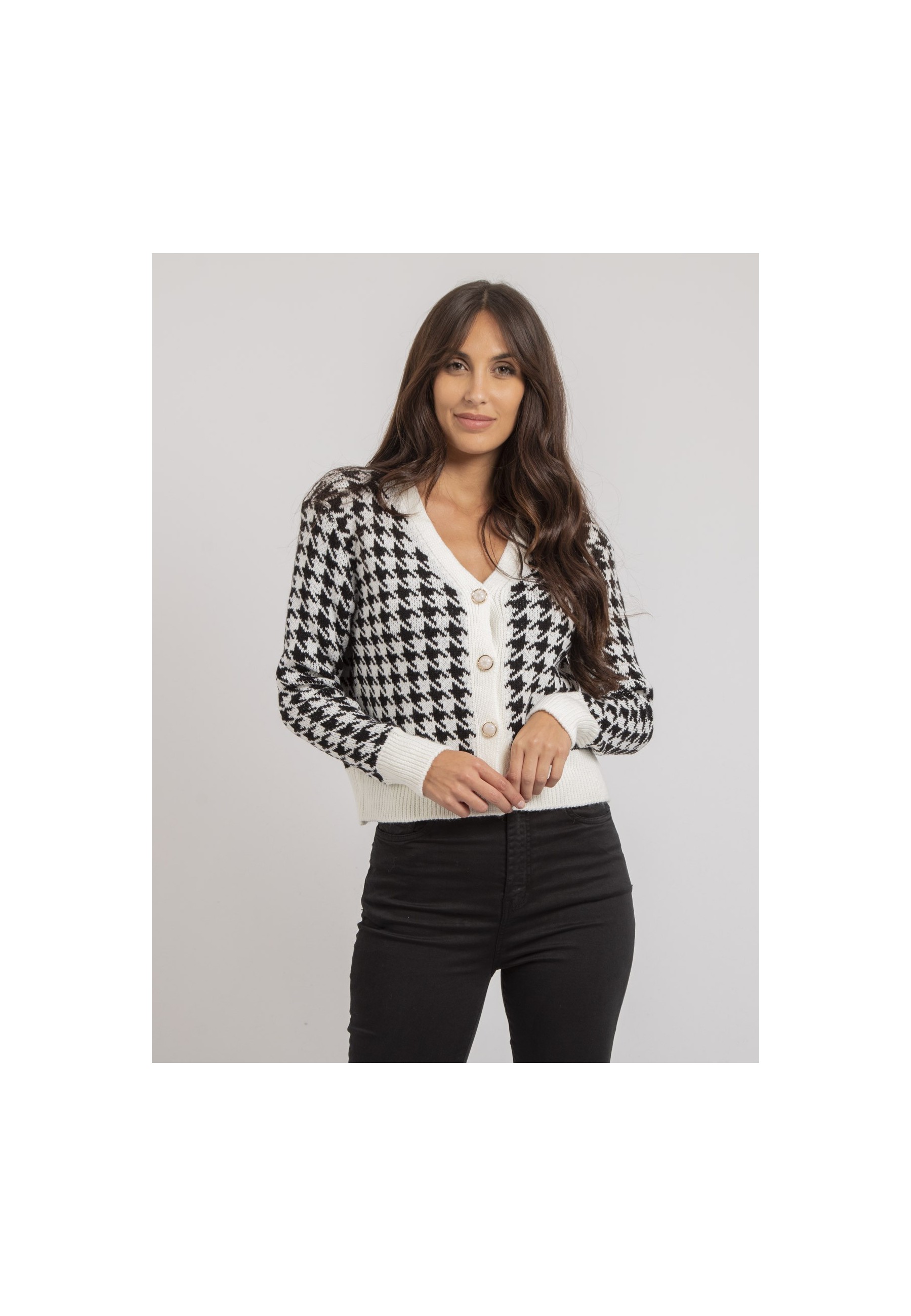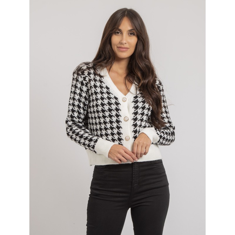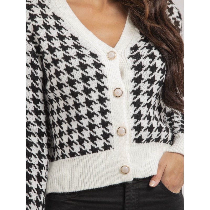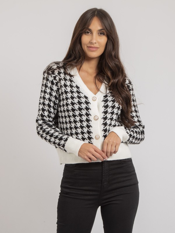 Détails produit Manches longues Longueur: court Col rond Finitions côtelées aux extrémités Bordures unies contrastantes Coupe ajustée Boutons fantaisie Motif pied-de-poule sur l'ensemble Composition et entretien... En savoir plus >