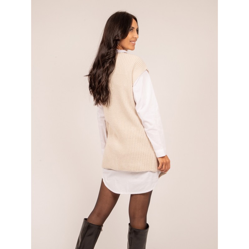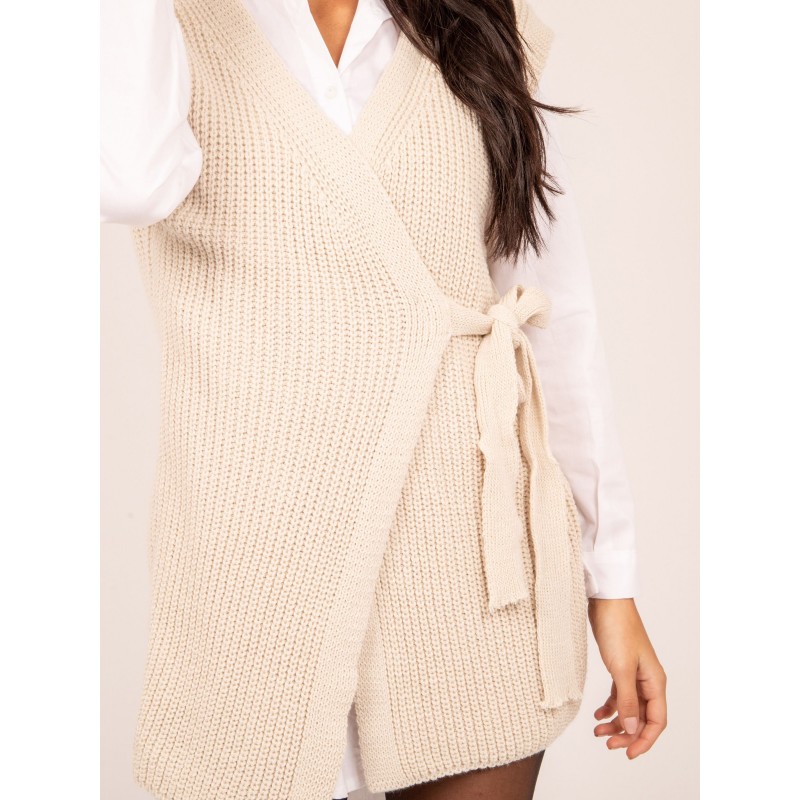 Détails produit Sans manches Col V  Fermeture nouée sur le côté Coupe droite, portefeuille Composition et entretien 100% acrylique Lavage en machine à 30° Conseils taille Le mannequin mesure 172 cm et porte... En savoir plus >