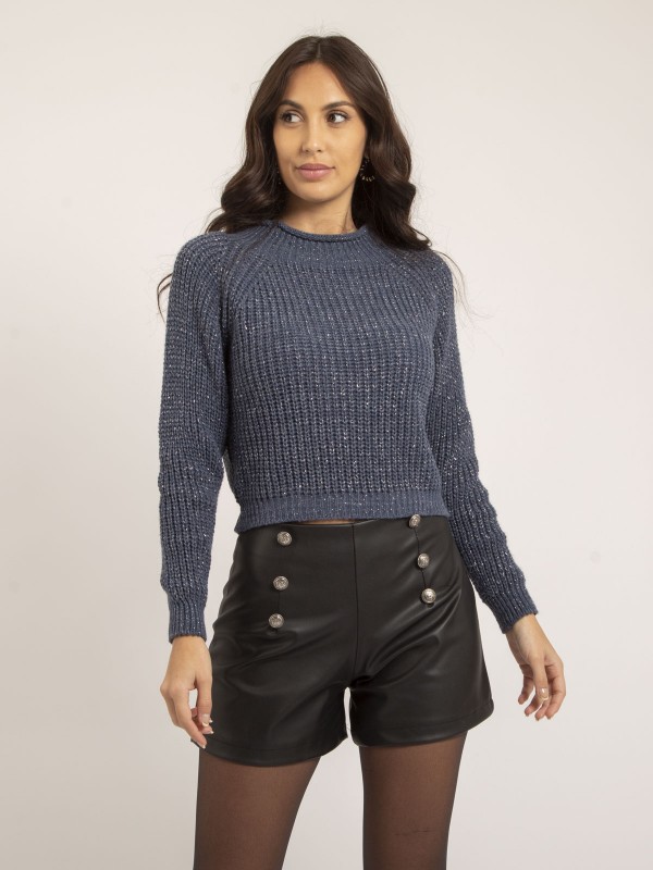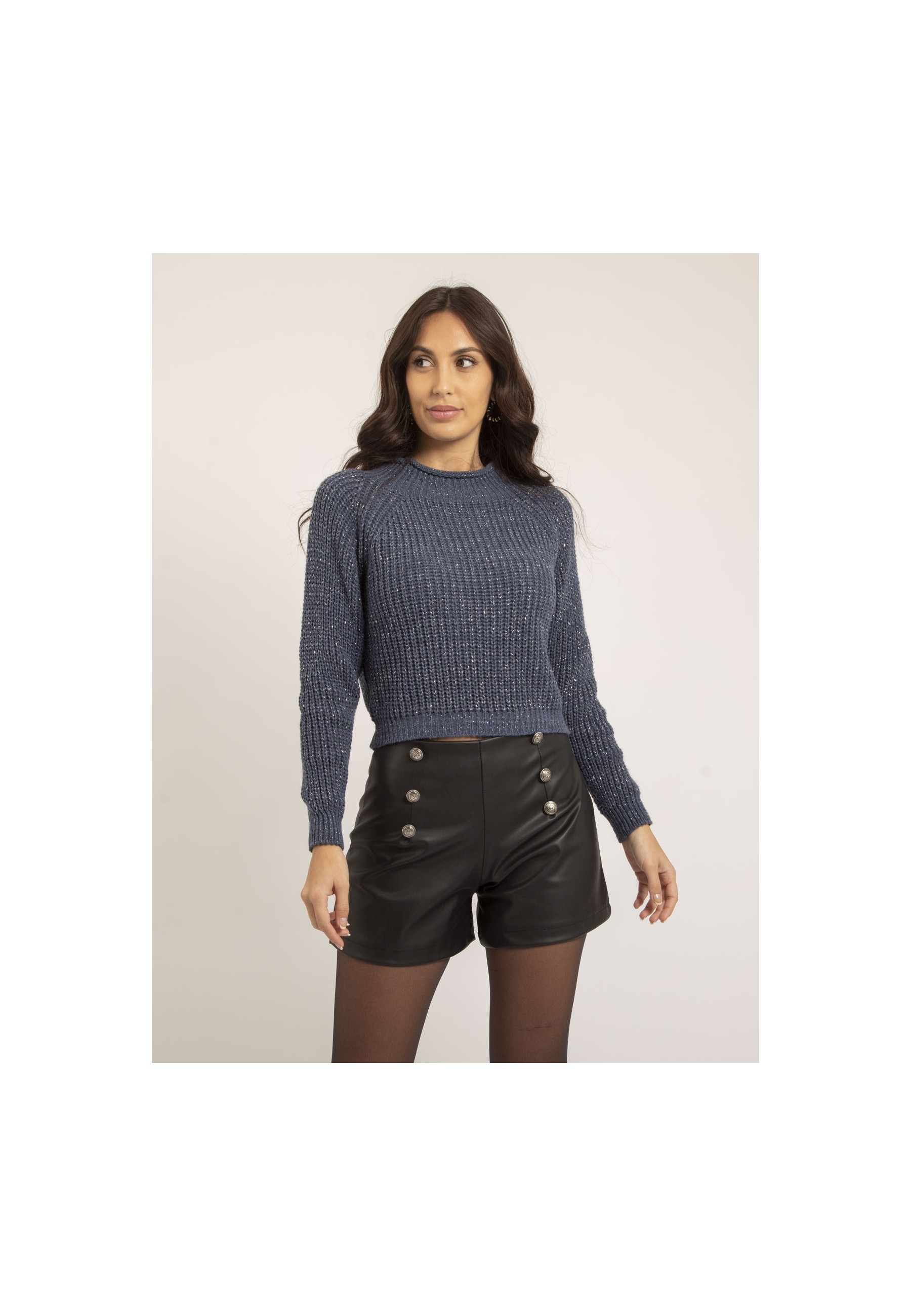 Détails produit Manches longues Coupe: court Col montant Bords côtes col, poignets et base Maille lurex sur l'ensemble Coupe ajustée Composition 100% acrylique Conseils taille Le mannequin mesure 172 cm et... En savoir plus >