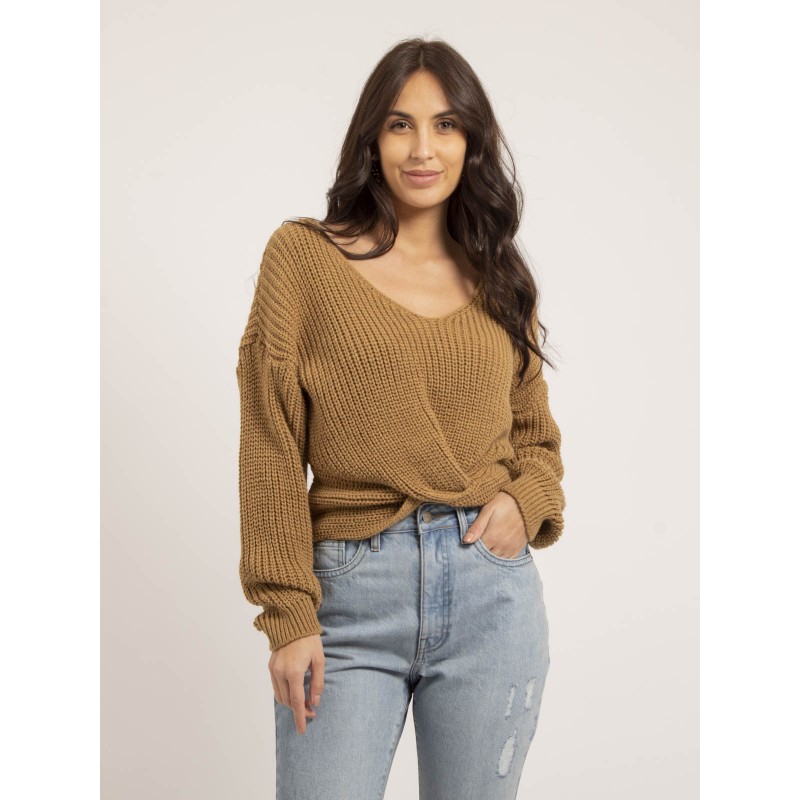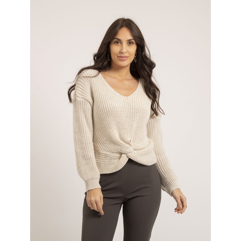 Ce pull uni au large col Dona Lisa, que vous aurez plaisir à porter saison après saison, saura sublimer vos tenues les plus simples, avec sa coupe droite confortable et son nœud fantaisie à sa base.
