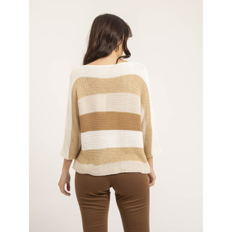 Détails produit Manches 3/4 Large col rond Coupe droite Finitions droites col, poignets, base Motif rayé jacquard sur l'ensemble Composition et entretien 100% acrylique Conseils taille Le mannequin mesure 172 cm et porte l'article en taille S/M