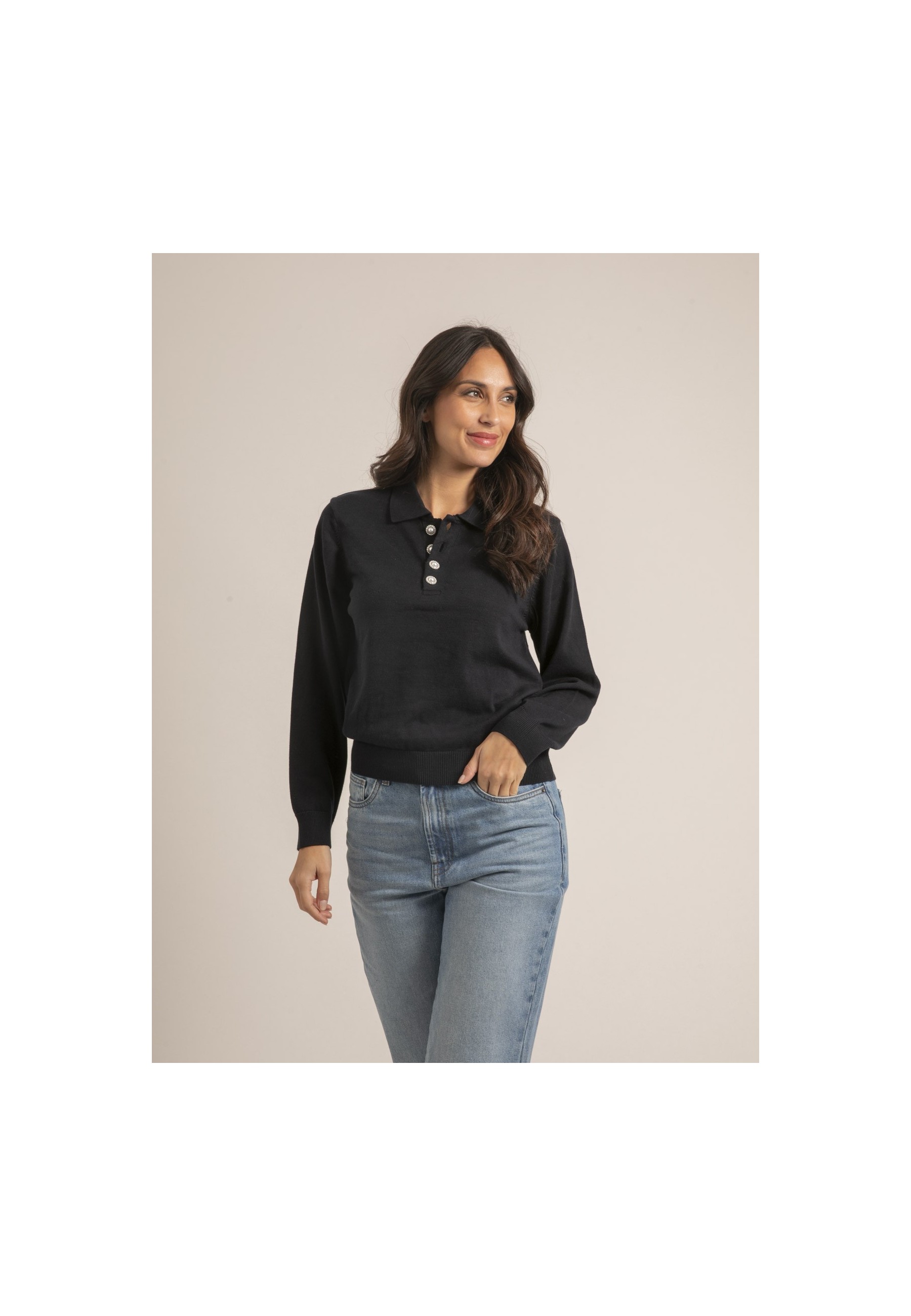 Ce pull fin pour femme Dona Lisa permet un look casual chic en toutes circonstances. Il adopte une coupe polo d’inspiration masculine, avec des manches longues. Surmontée d'un col classique, la pièce s’habille de jolis boutons contrastés le long... En savoir plus >