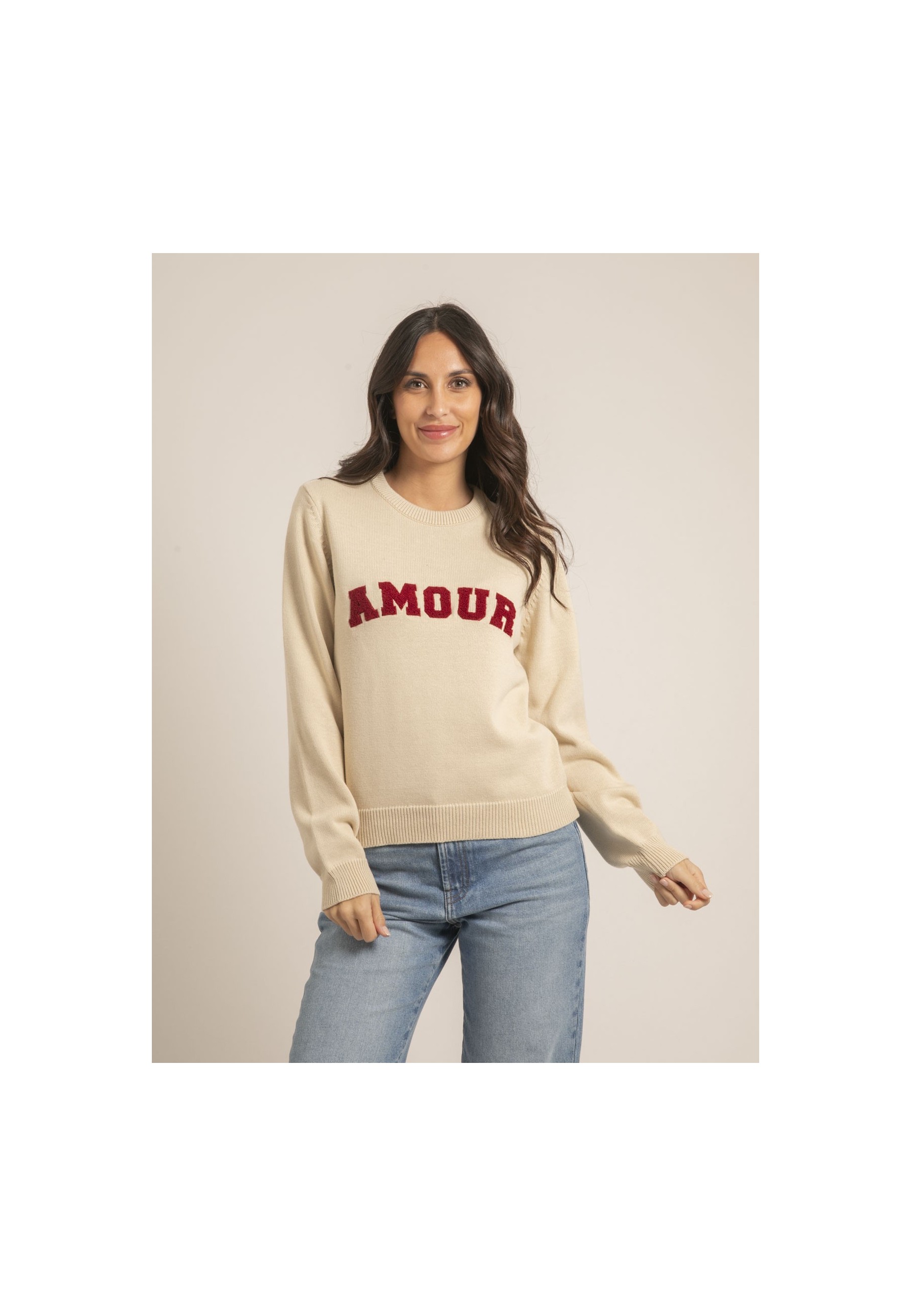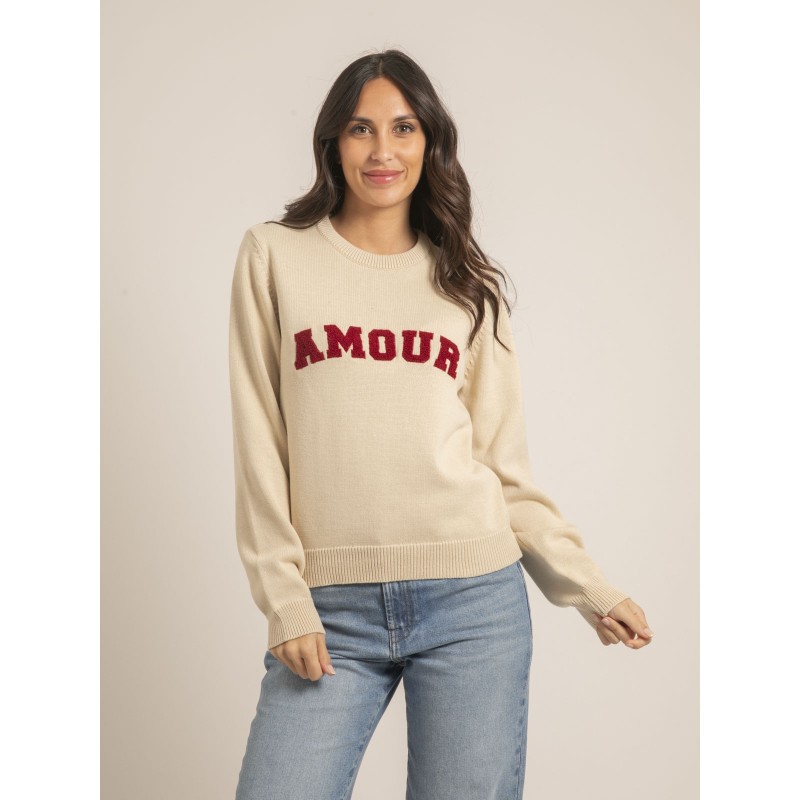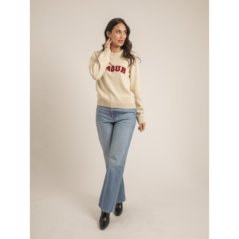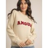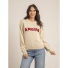Ce pull en coton Dona Lisa se distingue par son inscription "amour" sur le devant pour une note féminine tendance et néanmoins sportswear. Associé à un pantalon en cuir vegan de notre collection, ce pull apportera une note moderne à votre tenue.