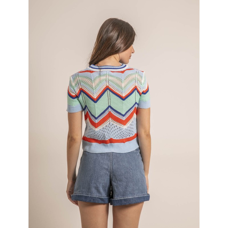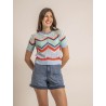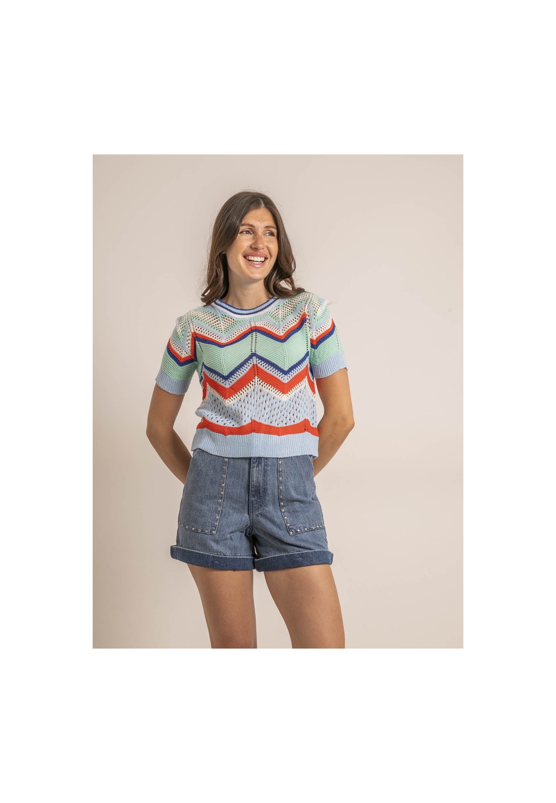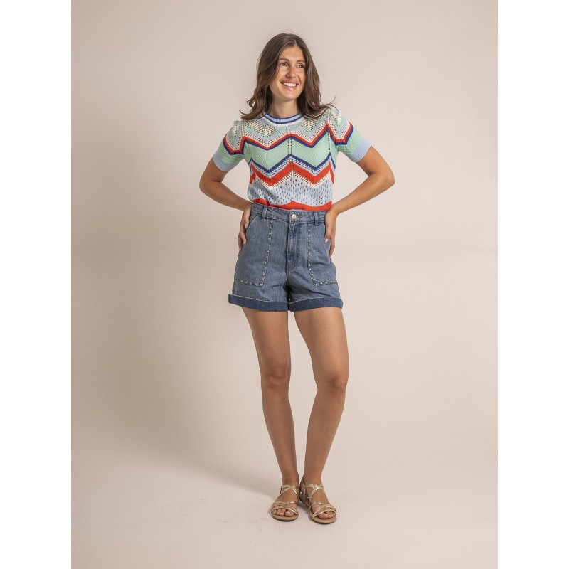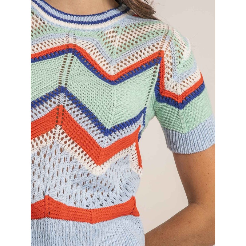 On aime ce pull Dona Lisa col rond à manches courtes, animé d'une délicate maille à motifs contrastés jacquard en all-over. Raffiné, il apporte une touche féminine à la silhouette. À porter toute la belle saison, quelle que soit l'occasion.