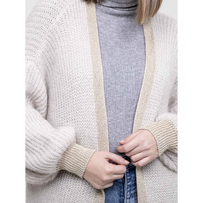 Ce long gilet ouvert Dona Lisa allie confort et élégance pour les journées fraîches d'hiver. Sa texture douce et sa coupe ample en font un allié idéal pour superposer vos tenues tout en ajoutant une touche de sophistication. Les détails subtilement scintillants au niveau des bordures ajoutent une note de raffinement à ce basique intemporel.