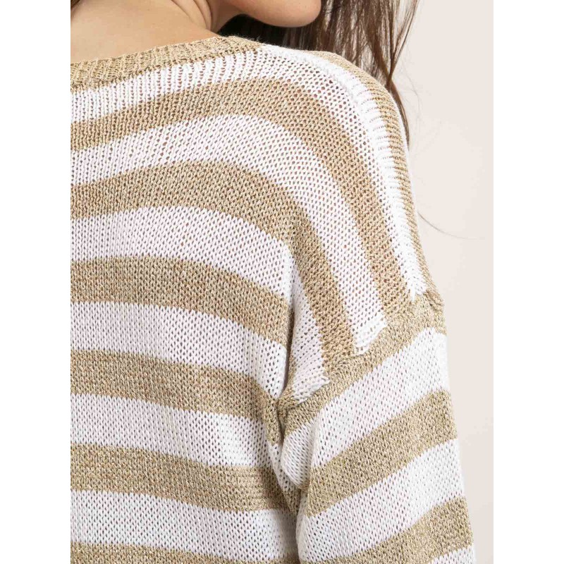Ajoutez une touche lumineuse et légère à votre garde-robe avec ce pull doux et aéré. Conçu avec un style décontracté et des rayures scintillantes, il se porte parfaitement en demi-saison. Une pièce versatile qui allie confort et élégance... En savoir plus >