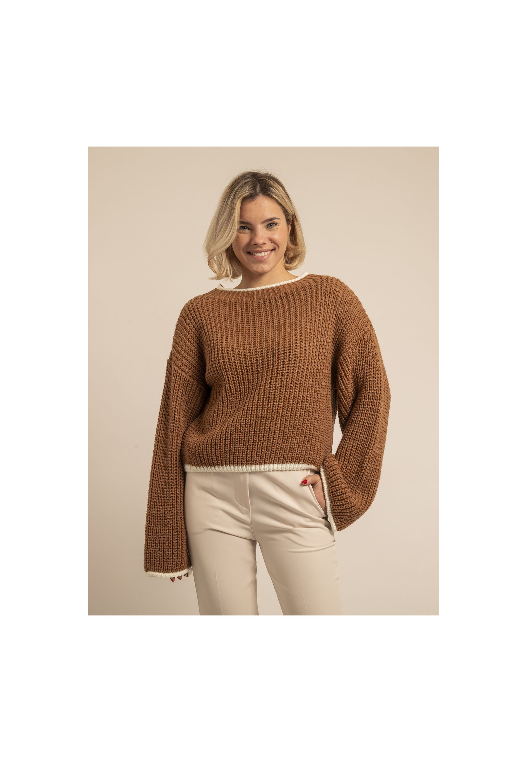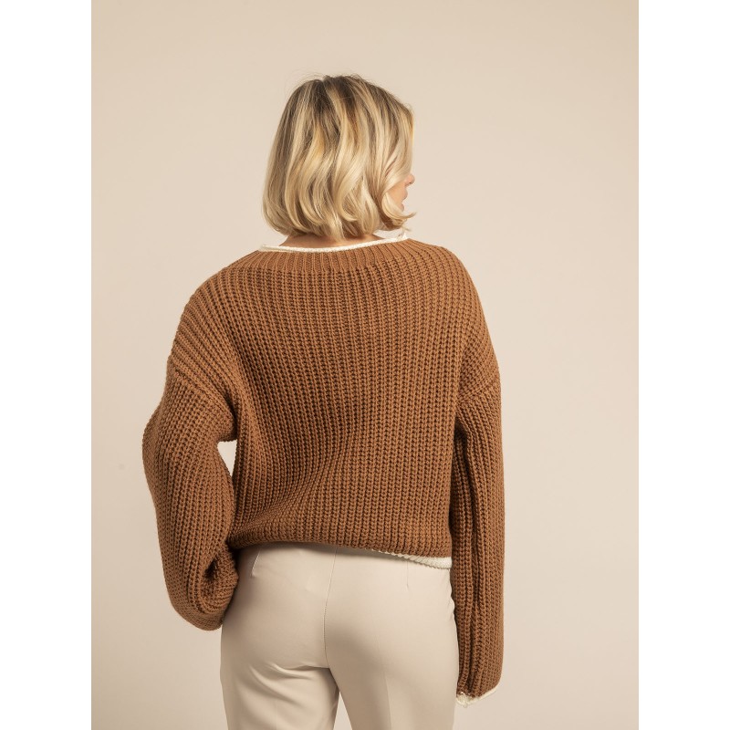 Ce pull allie confort et modernité avec son tricot généreux et son design légèrement oversize. Idéal pour les journées fraîches, il enveloppe dune douceur intemporelle tout en apportant une touche d'élégance grâce à ses finitions contrastées. Une pièce versatile et chaleureuse.