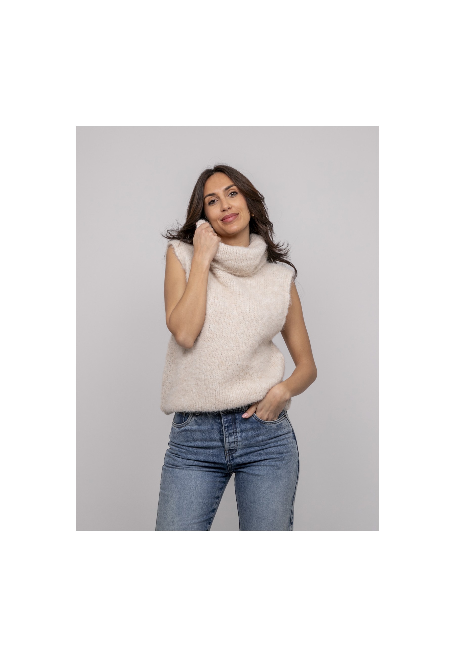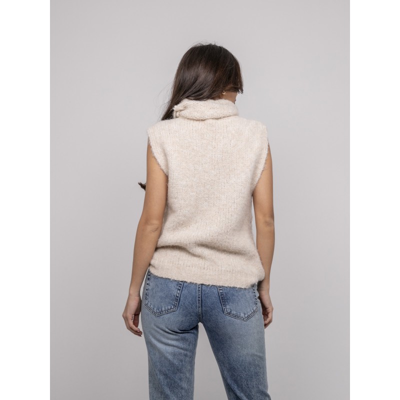 Chic et douillet, le pull sans manche revisite l’esprit cocooning avec élégance. Sa coupe ample, son col roulé généreux et sa maille duveteuse en font une pièce idéale pour superposer ou porter seule avec audace. Il apporte une touche de chaleur et de style à toutes vos tenues hivernales, que ce soit en look casual avec un jean ou plus sophistiqué avec une jupe satinée.