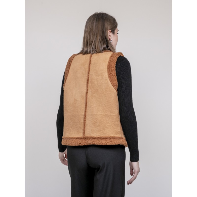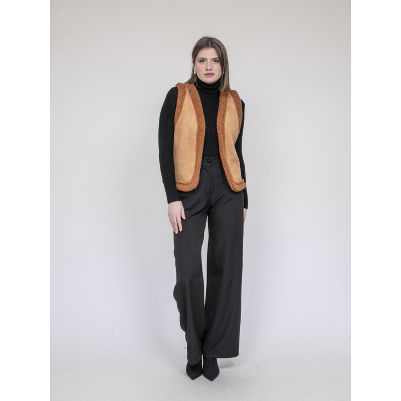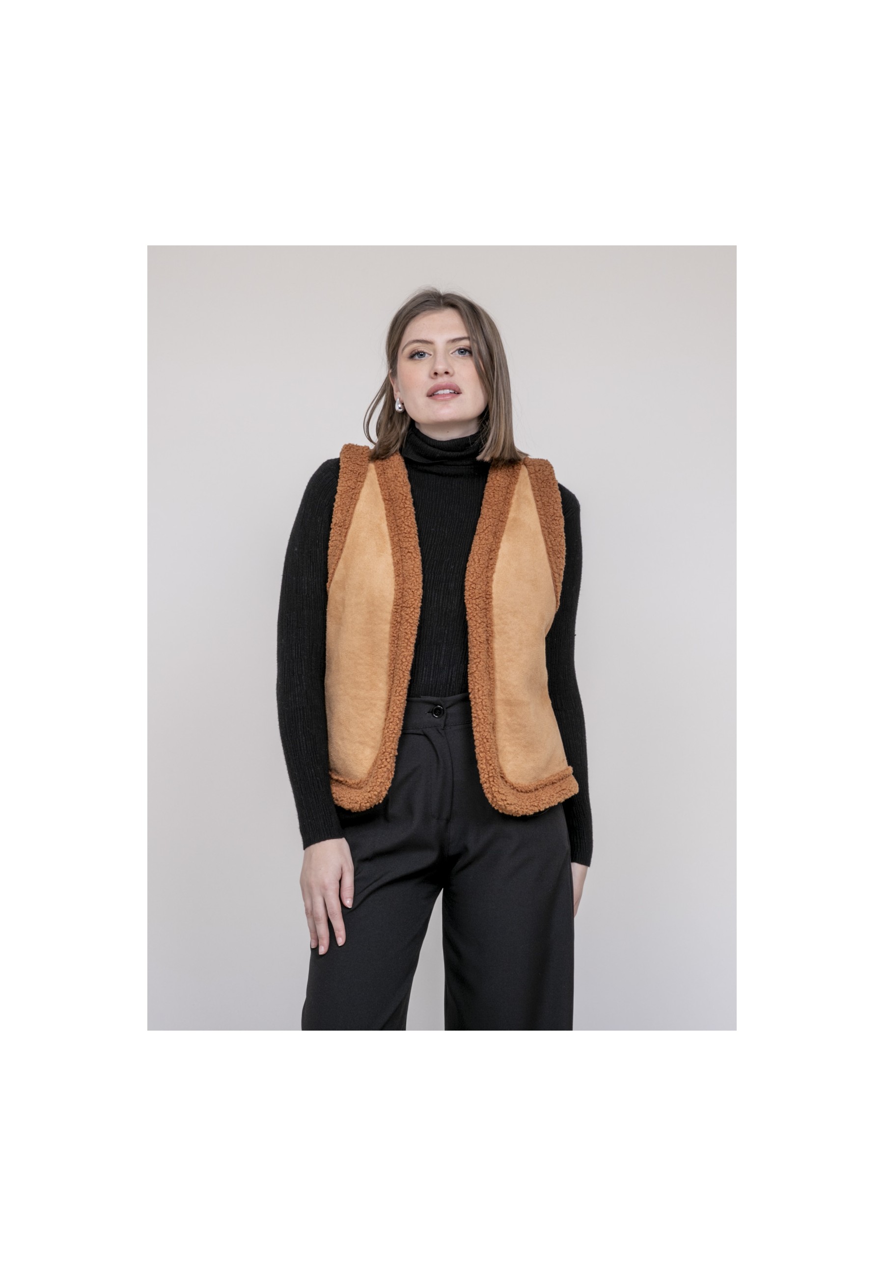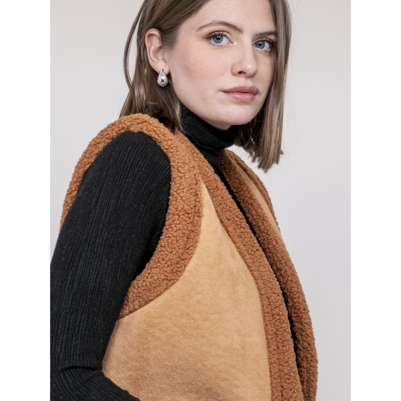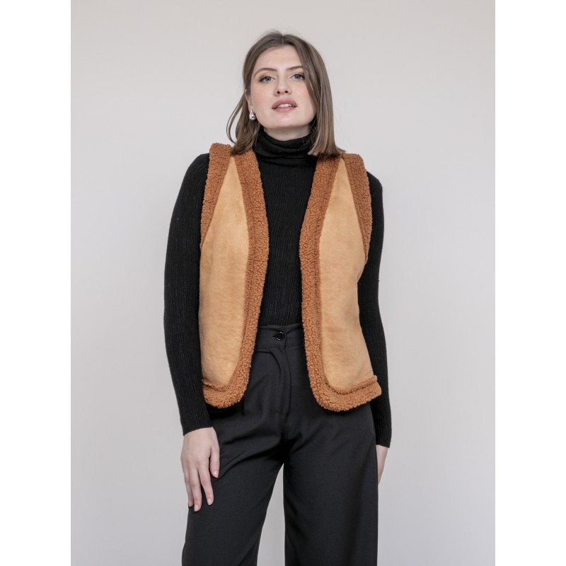 Ajoutez une touche tendance et cosy à vos looks d’hiver avec notre gilet sans manches. Sa texture effet peau retournée et ses finitions en fausse laine bouclée en font un indispensable pour un style casual chic. À superposer sur un col roulé ou une maille fine, il allie confort et allure moderne, parfait pour les femmes en quête dune silhouette stylée et réchauffée. Un basique revisité à l’allure rétro pour les journées les plus fraîches.