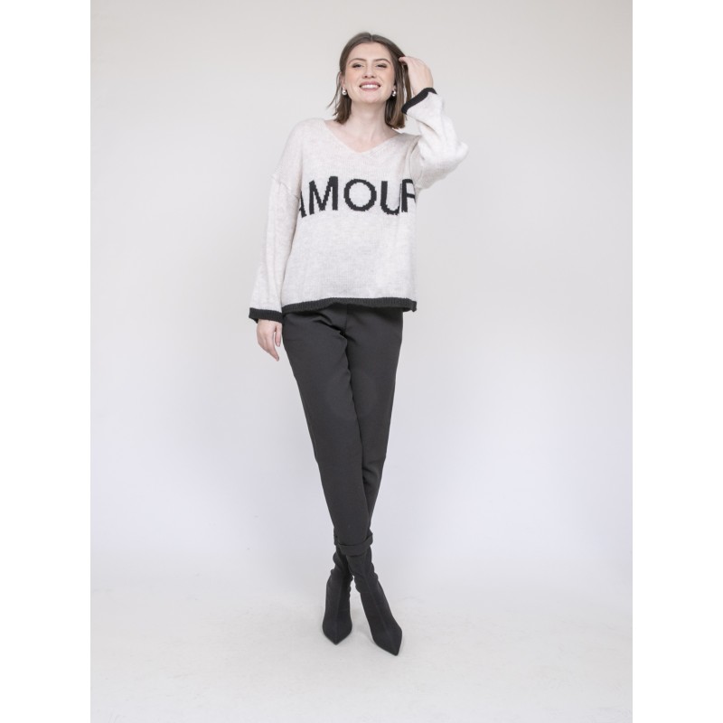 • Message AMOUR en jacquard noir contrastant