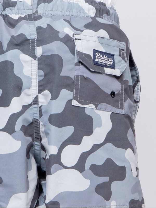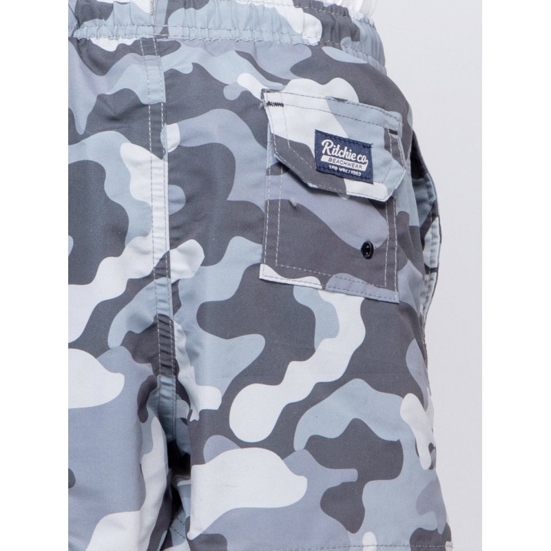 Maillot de bain à motif camouflage Ce short se décline en 2 coloris. Détails produit Taille élastiquée Fermeture par cordon de serrage 2 poches ouvertes 1 poche arrière passepoilée avec écusson Ritchie beachwear Slip intérieur... En savoir plus >