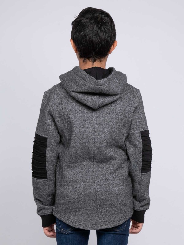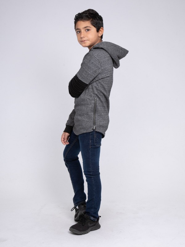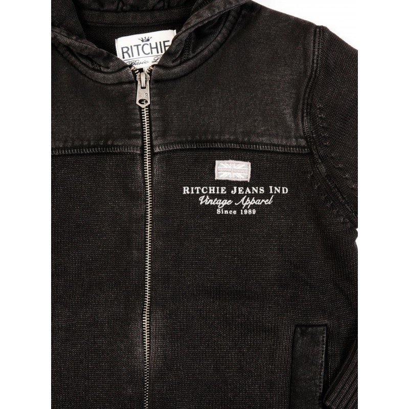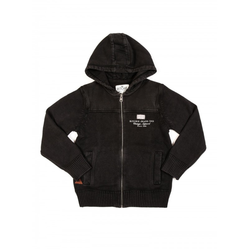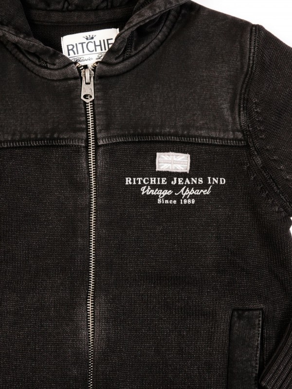 Gilet à capuche pur coton avec mélange de mailles et molleton au torse et à la capuche. Fermeture par zip. 2 poches à mains ouvertes. Ecusson drapeau anglais et signature Ritchie Jeans sur poitrine. Finitions bords cotes. 100% coton. Lavage en machine à 30°.