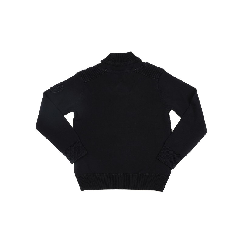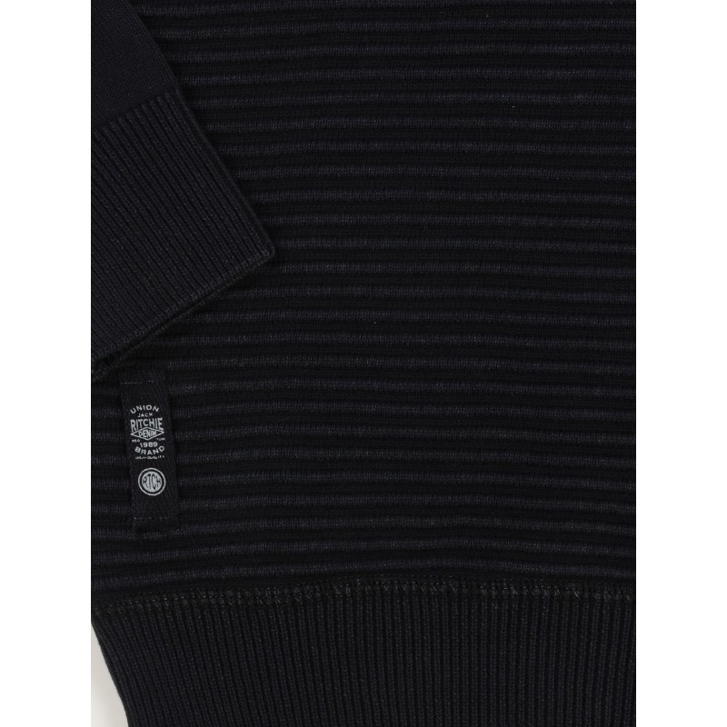 Pull col chale uni pur coton. Joli mélange de mailles avec effet raglan. Ecusson siglé Ritchie sur manche gauche. Finitions bords cotes. 100% coton. Lavage en machine à 30°.