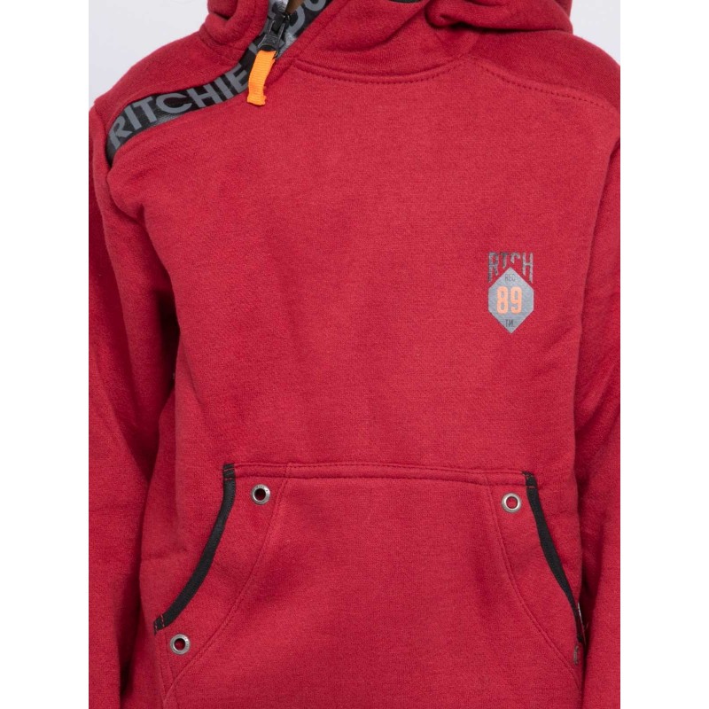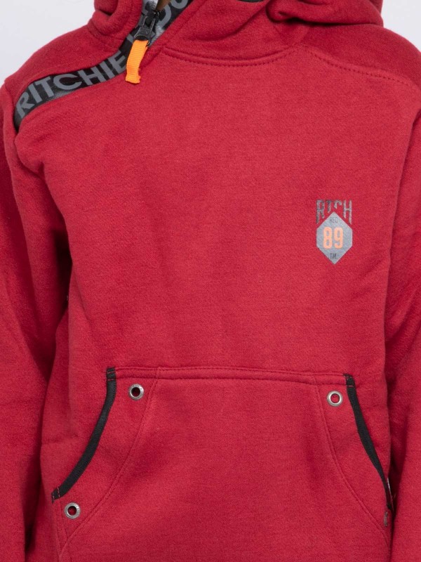 Sweat capuche en molleton avec col zippé sur le coté droit. Poche kangourou. Logo Ritchie 89 sur poitrine. Finitions bords côtes. 60% coton, 40% polyester. Lavage en machine à 30°.