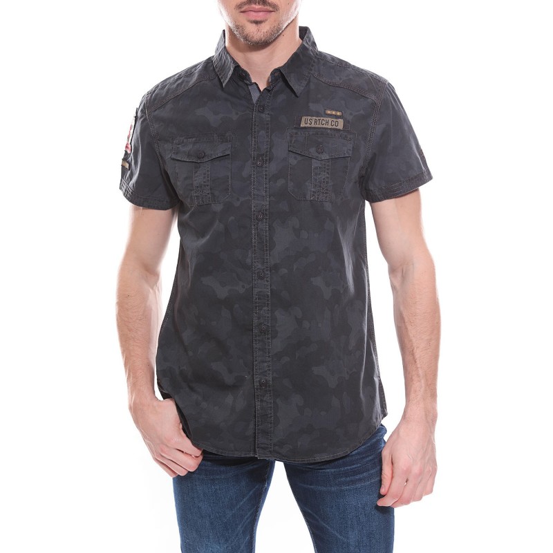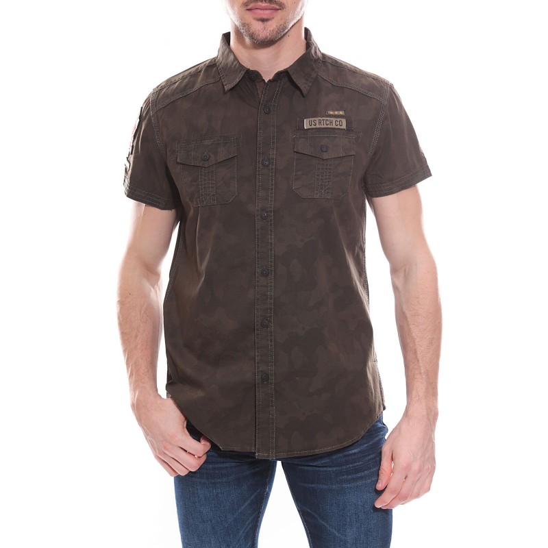 Détails produits Manches courtes  Col classique, pointes libres  Motif imprimé camouflage  Coupe droite  2 poches poitrine  Ecussons brodés sur manche et poitrine    Composition et entretien 100% coton  Lavage en... En savoir plus >