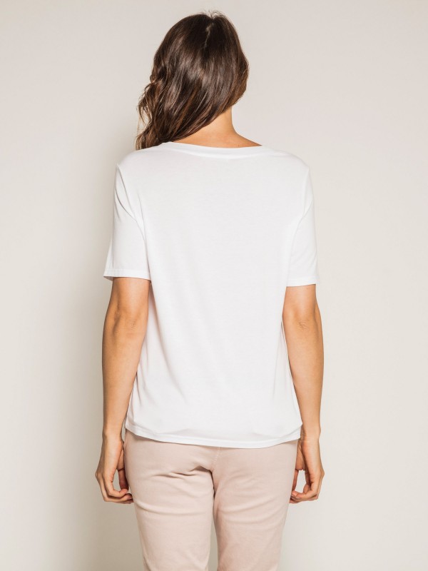 Ce top Dona Lisa en viscose apportera une touche féminine et tendance à vos looks de saison. Associé à un jean ou un pantalon de notre collection, ce T-shirt blanc lumineux deviendra un incontournable de votre garde-robe.