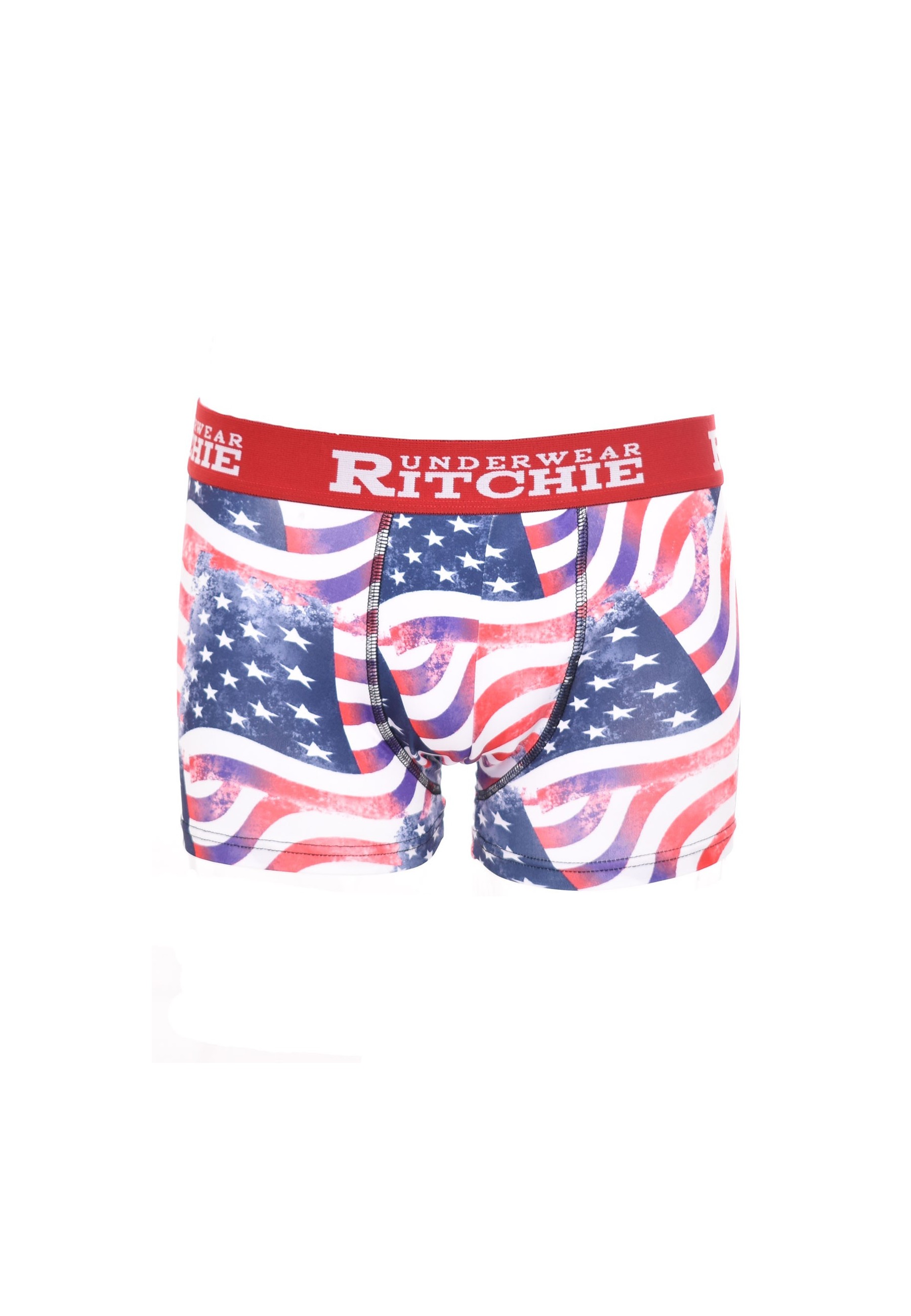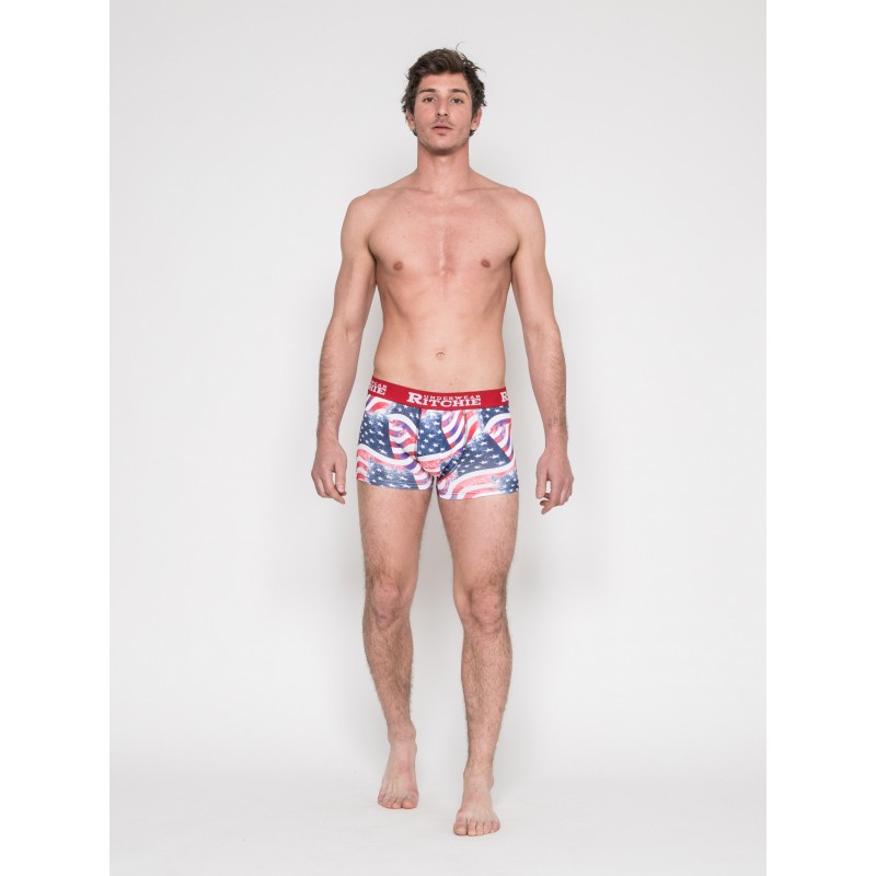 Détails produit Microfibre douce et fluide, très agréable à porter Motif "drapeau des Etats-Unis" imprimé sur l'ensemble du modèle Intérieur doublé devant Large ceinture élastiquée griffée RITCHIE UNDERWEAR   Composition et... En savoir plus >
