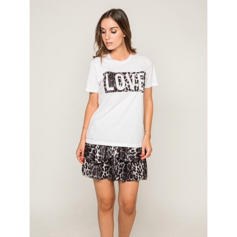 Cette jupe Dona Lisa opte pour une longueur mini et un imprimé léopard qui lui confèrent une allure rock tendance. Une jupe à décaler avec un sweat, ou à porter avec son tee-shirt assorti référence FOVE.