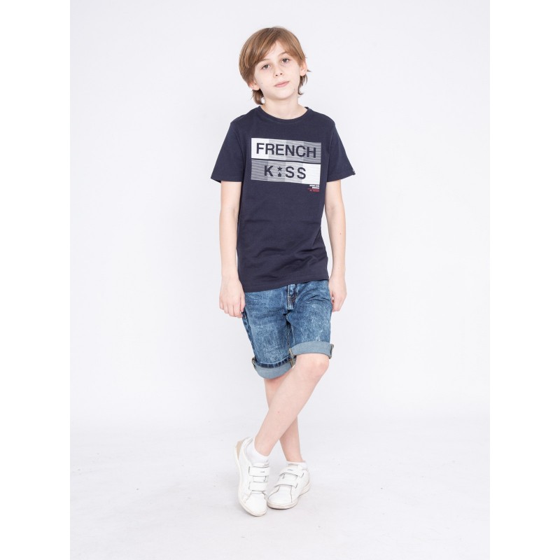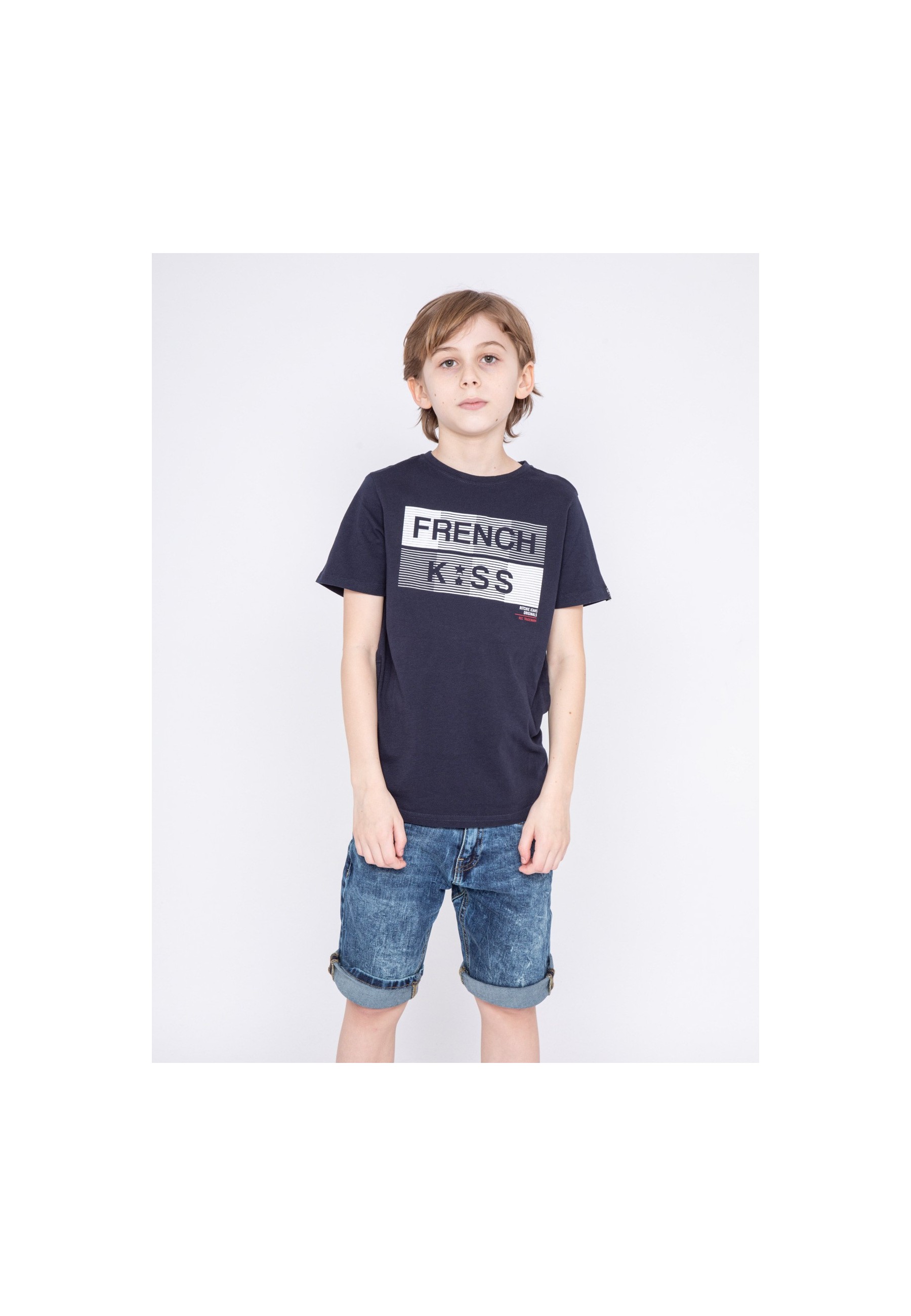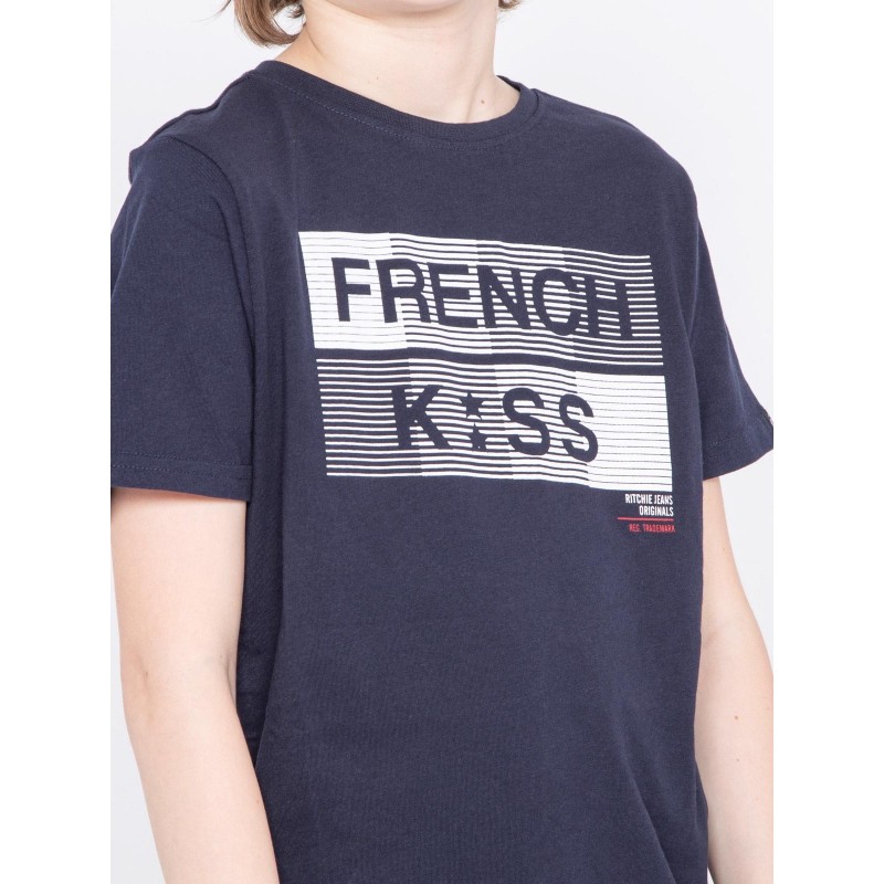 Ce tee shirt col rond Ritchie Jeans en coton léger et confortable se distingue par son inscription imprimée "french kiss" sur fond contrasté au motif rayé qui lui confère une touche graphique tendance.