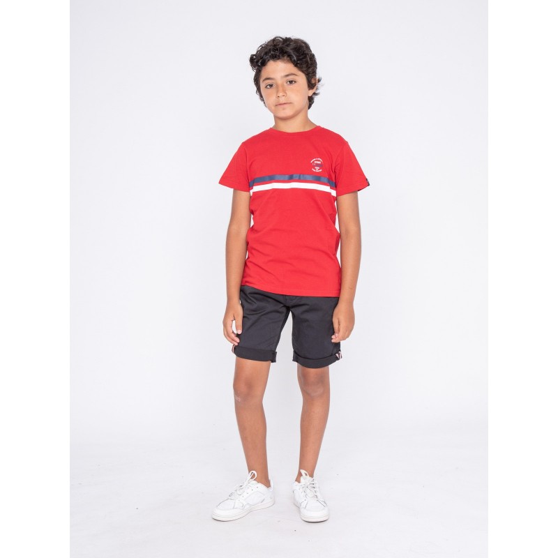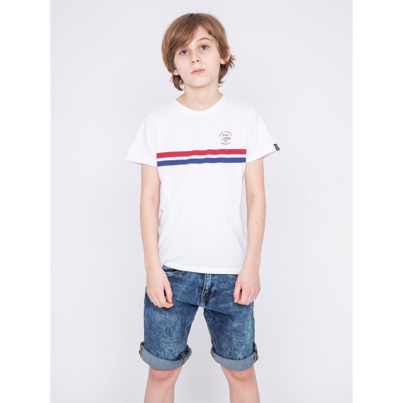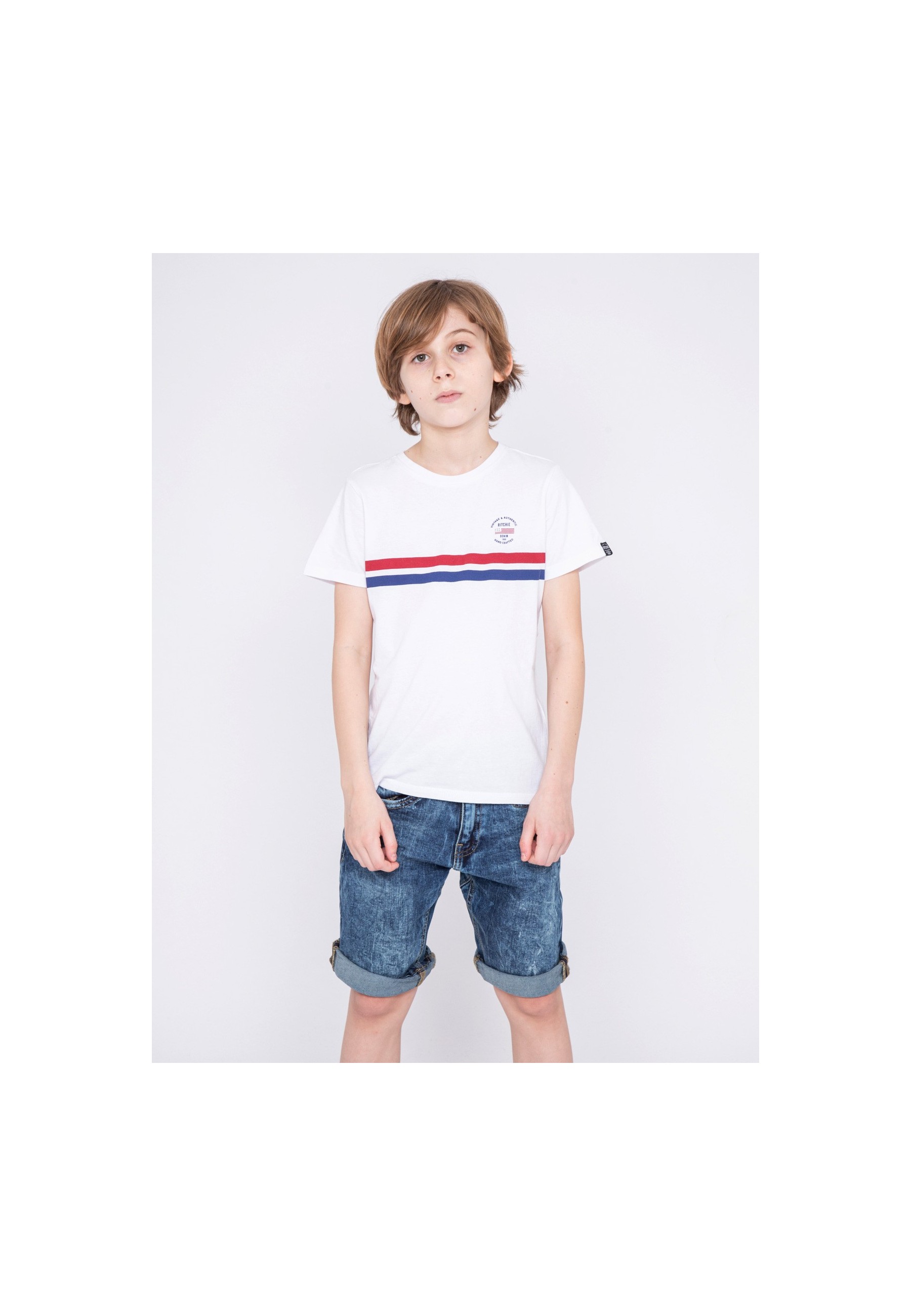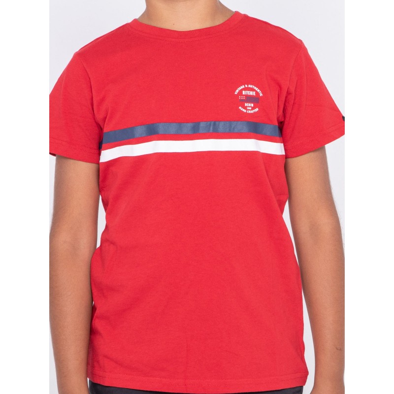 Ce tee shirt col rond Ritchie Jeans en coton flammé léger et confortable se distingue par ses bandes horizontales et son logo contrastés à l'avant. Ce tee shirt à manches courtes s'accordera parfaitement au dressing casual de saison de vos garçons.