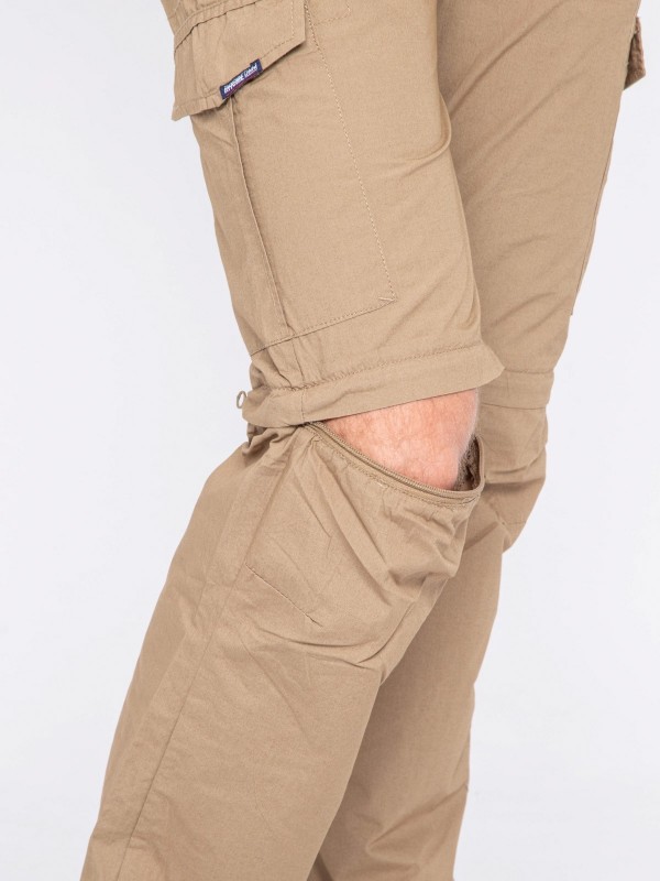 • Transformable en bermuda par bande de tissu amovible, zip caché