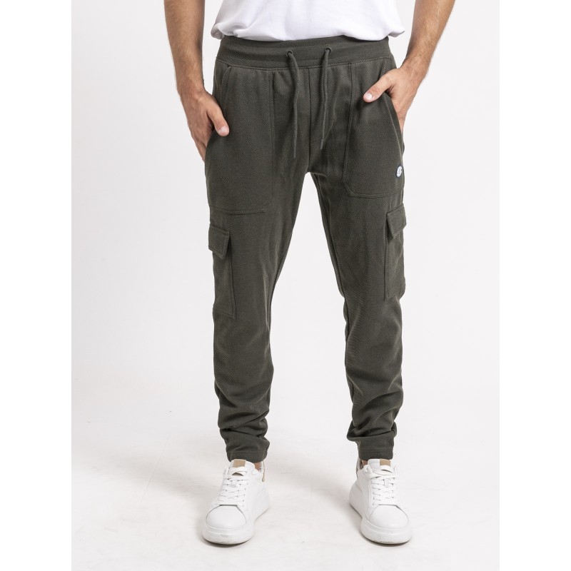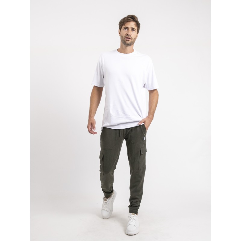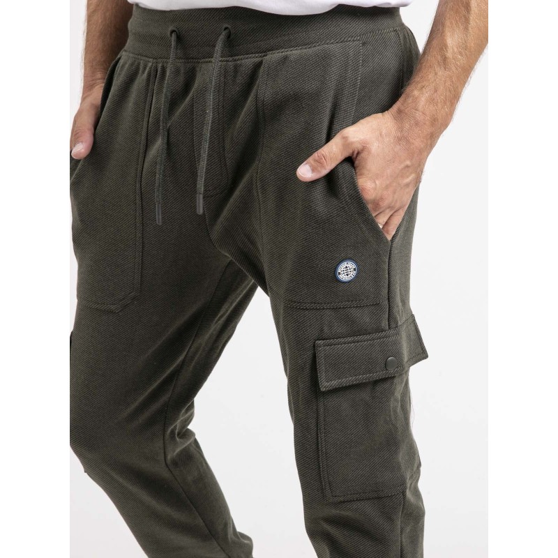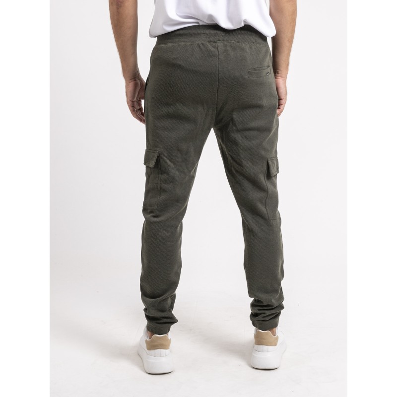 Ce pantalon cargo en pur coton à motifs texturés est parfait pour une tenue décontractée avec une touche de fonctionnalité. Son tissu en coton texturé lui confère une allure robuste tout en restant doux et confortable à porter. La coupe est ajustée aux chevilles avec des ourlets élastiqués, offrant un style moderne et fuselé. Le pantalon dispose de nombreuses poches pratiques, dont deux poches cargo à rabat sur les côtés, idéales pour transporter vos essentiels, ainsi que des poches arrière à bouton-pression pour plus de sécurité. La taille élastiquée avec cordon de serrage assure un ajustement optimal et confortable. Ce pantalon s'intègre parfaitement à une garde-robe urbaine pour un look casual et fonctionnel.