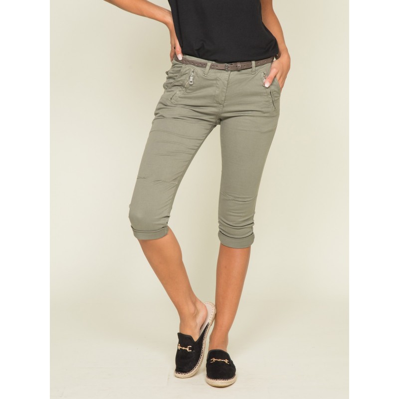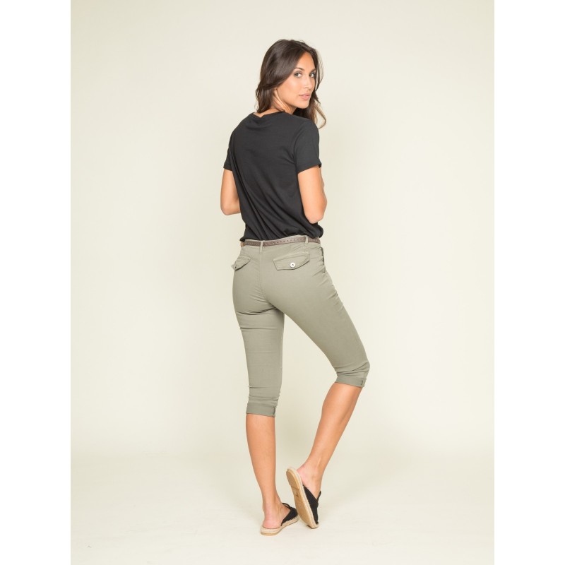 Ce pantacourt chino Dona Lisa apportera une note savamment décontractée à vos tenues. Il se dote d'une ceinture amovible pour une touche rock féminine. Un incontournable du dressing mêlant parfaitement esprit casual et élégance, qui s'accordera parfaitement avec un top de notre collection et une paire de sandales.