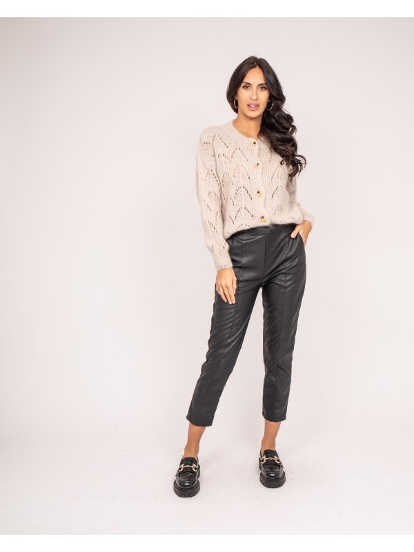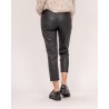 Ce pantalon Dona Lisa se caractérise par sa coupe 7/8e et sa taille haute, pile dans la tendance actuelle. Il se portera parfaitement avec une veste et un top plus oversize, pour un jeu de volume contrasté. Ce pantalon droit en similicuir est un classique intemporel du vestiaire féminin, qui vous accompagnera au fil des saisons.