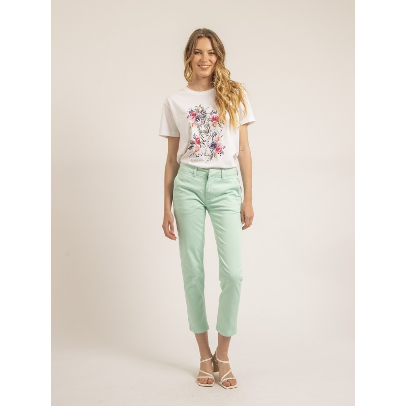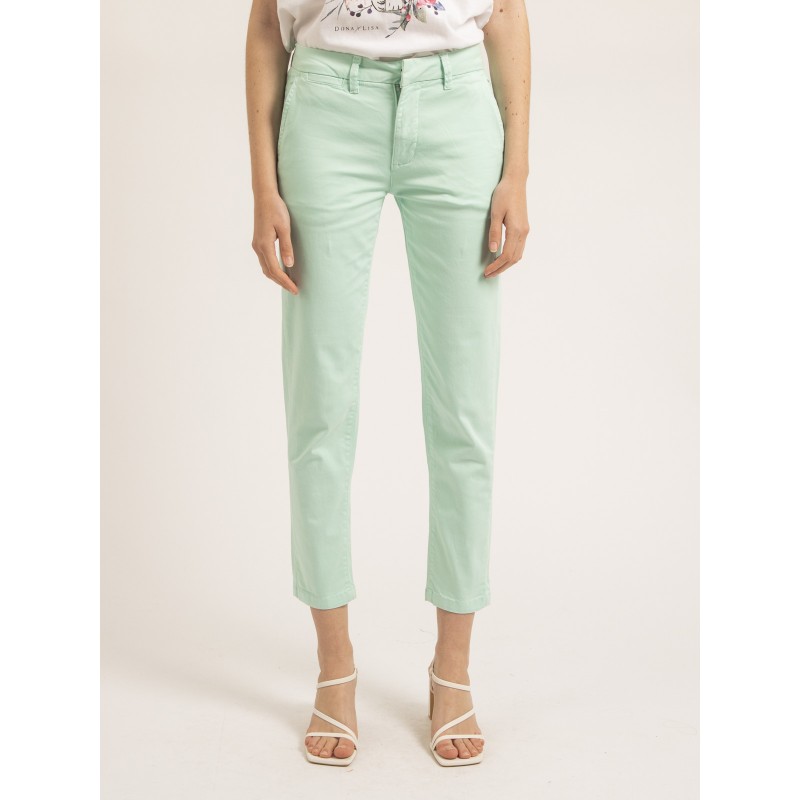 Ce pantalon chino Dona Lisa arbore une coupe ajustée des plus tendances. Cette pièce polyvalente est un indispensable. Confectionnée dans un tissu stretch, elle assure un porter des plus agréables. Idéal en toute saison, ce pantalon se marie avec un chemisier et des talons pour un look ultra féminin ou un t-shirt sérigraphié et des boots pour un look rock chic empreint de caractère.