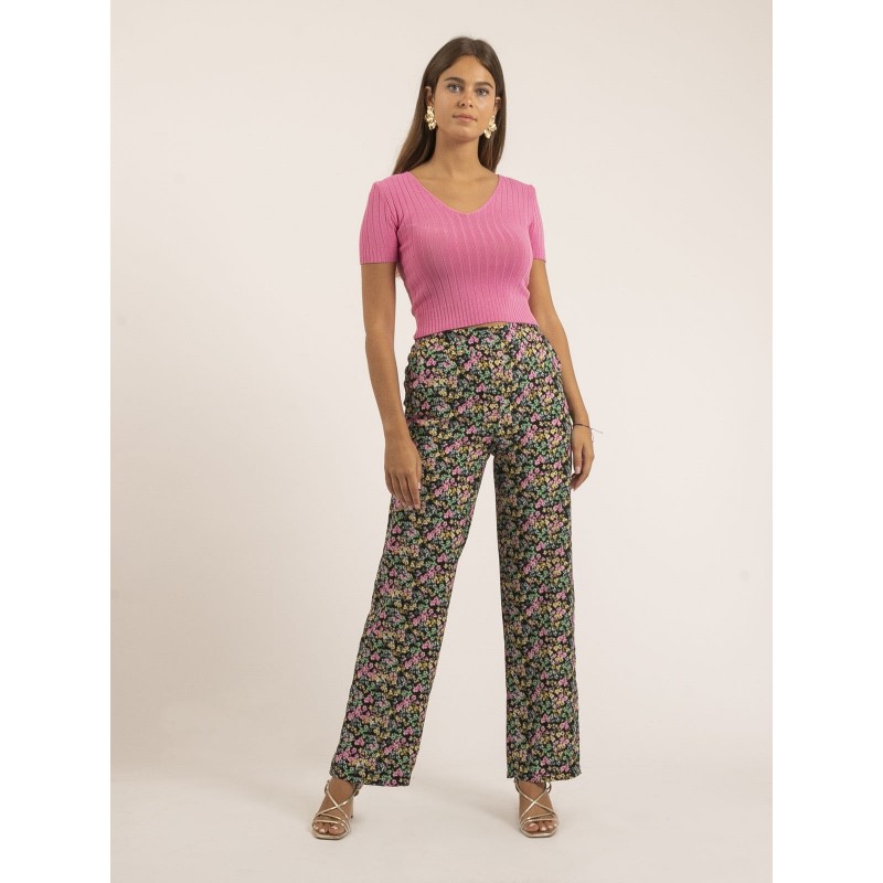 Ce pantalon fluide Dona Lisa au motif floral en all over incarne la tendance seventies de la saison et apportera une touche de gaieté dans votre vestiaire! Doux et ample, il vous accompagnera toute la belle saison, en toutes occasions.