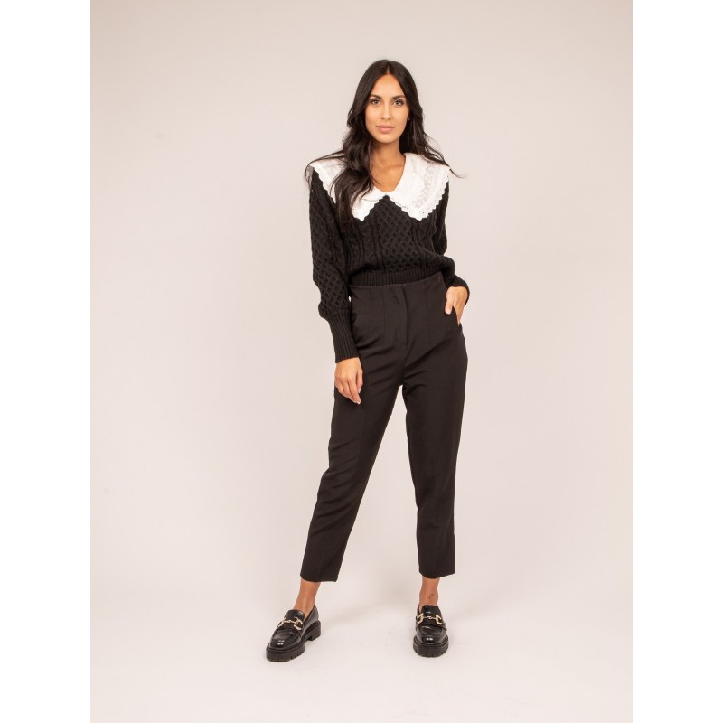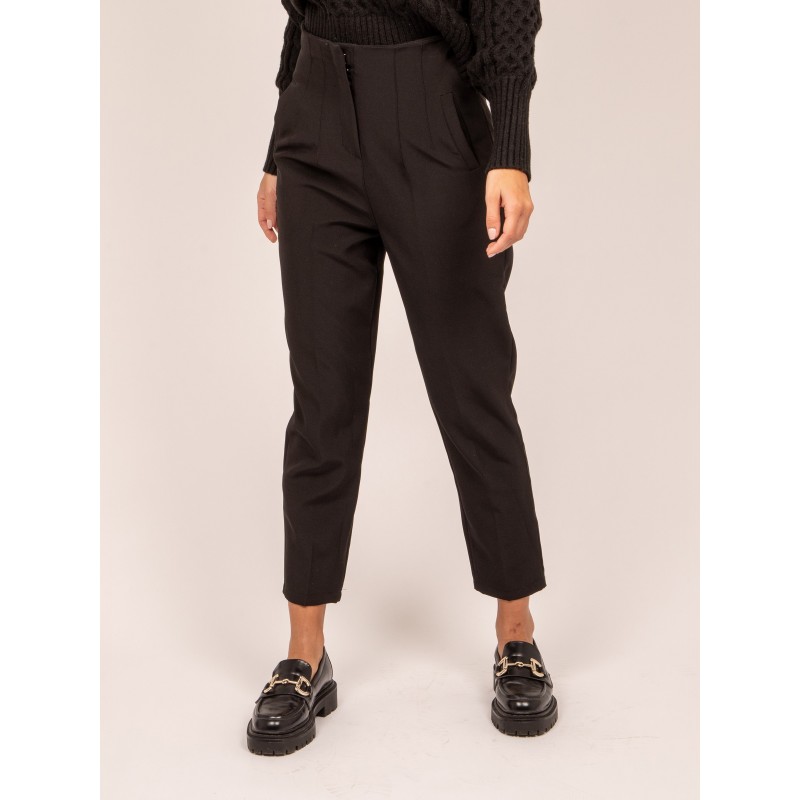 Ce pantalon Dona Lisa s'impose comme un classique du vestiaire féminin, qui reflète l'inspiration rétro de notre collection. Décliné dans une coupe carotte, il présente des pinces au niveau de la taille et une jambe droite. Misez sur la sobriété en accordant ce pantalon 7/8 a une chemise à motifs, une veste de blazer et des richelieus a lacets.