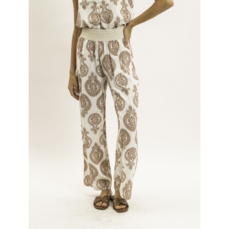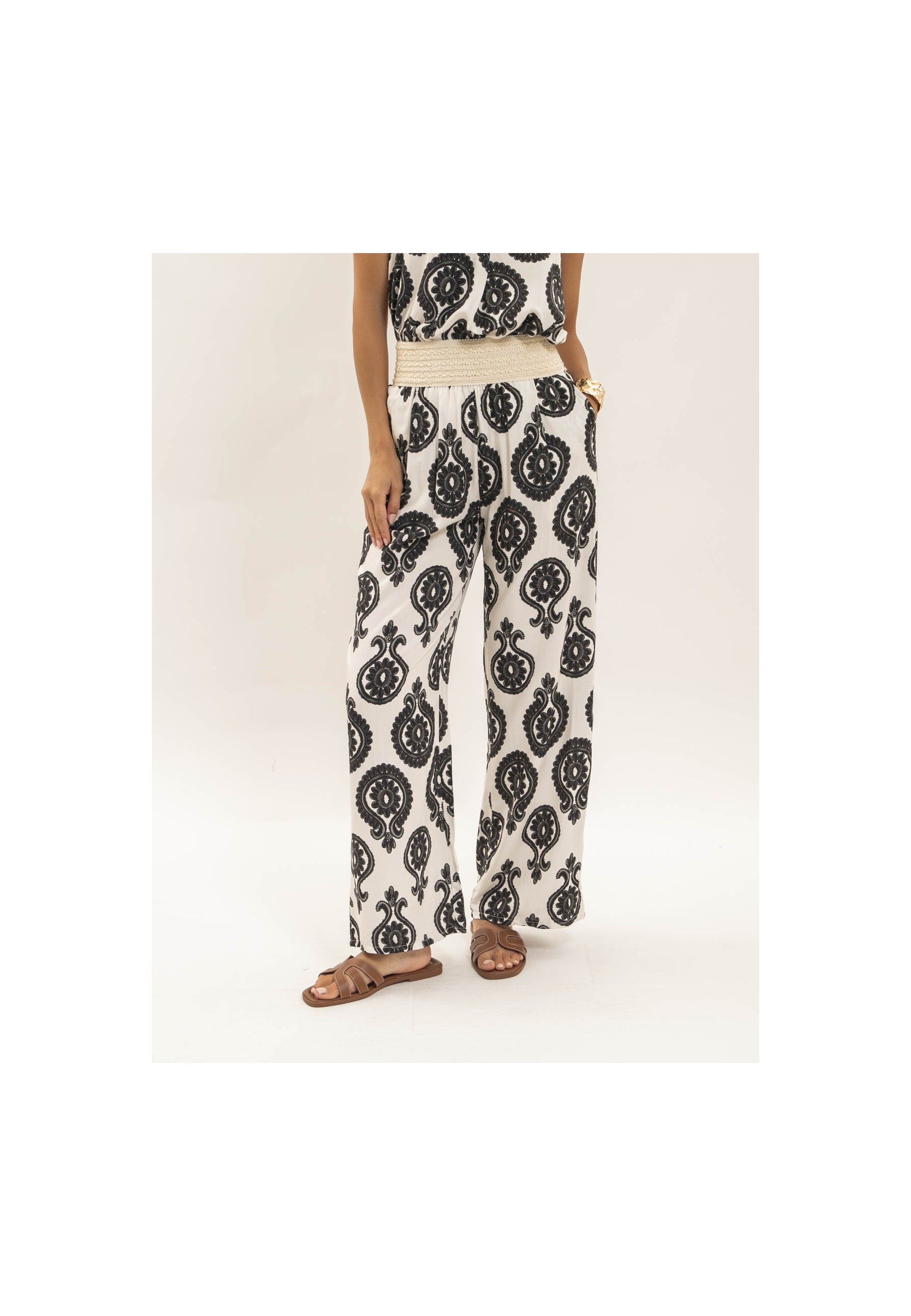 Ce pantalon fluide et élégant Dona Lisa est le compagnon idéal pour une allure chic et décontractée. Avec ses motifs uniques et sa taille élastique, il combine confort et style. Parfait pour les journées estivales ou les soirées décontractées, il apporte une touche de sophistication à votre garde-robe.