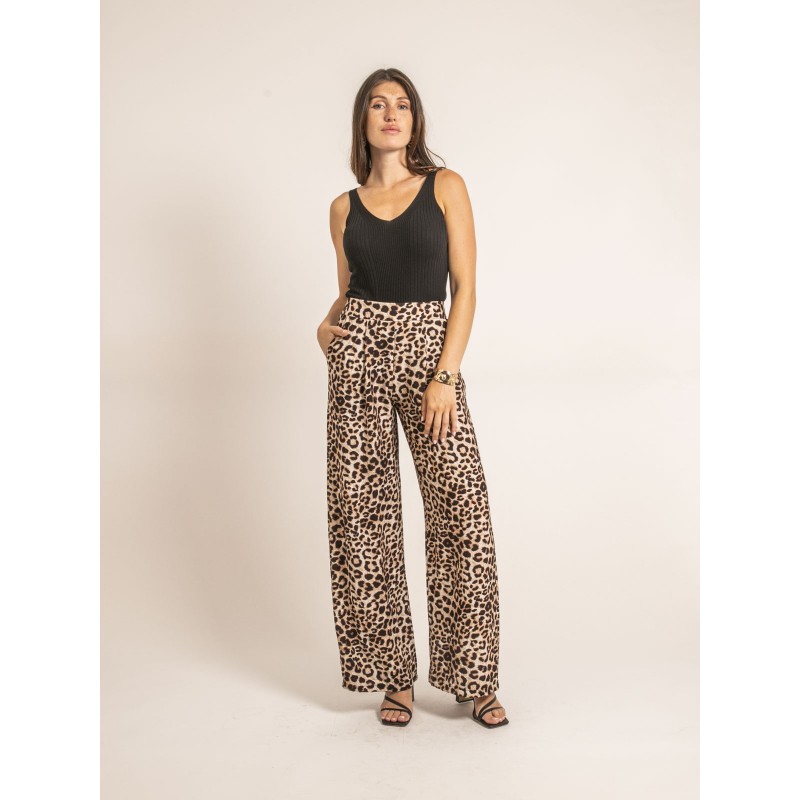 Ajoutez une touche d'élégance féline à votre garde-robe avec ce pantalon fluide imprimé animalier Dona Lisa. Parfait pour les journées ensoleillées ou les soirées estivales, il allie confort et modernité avec une coupe ample et des détails... En savoir plus >