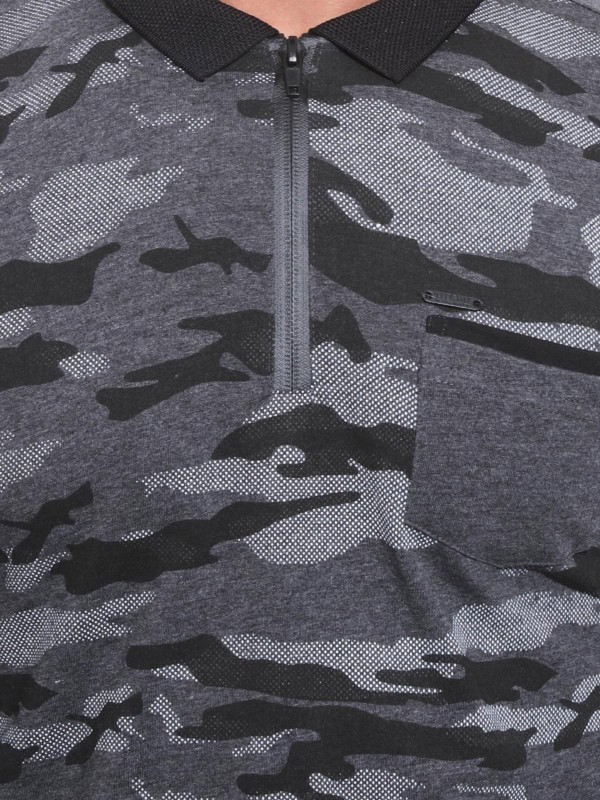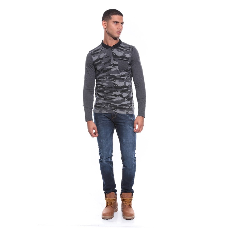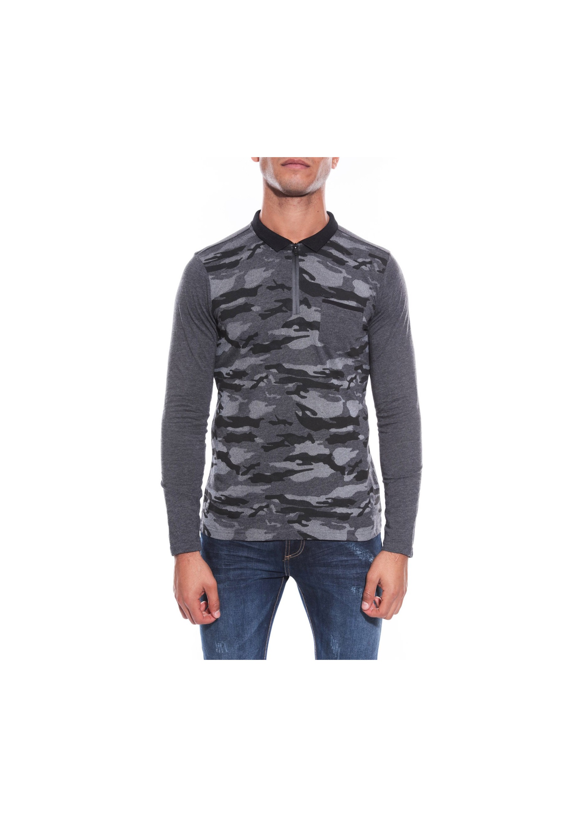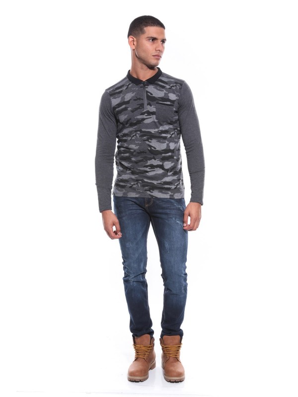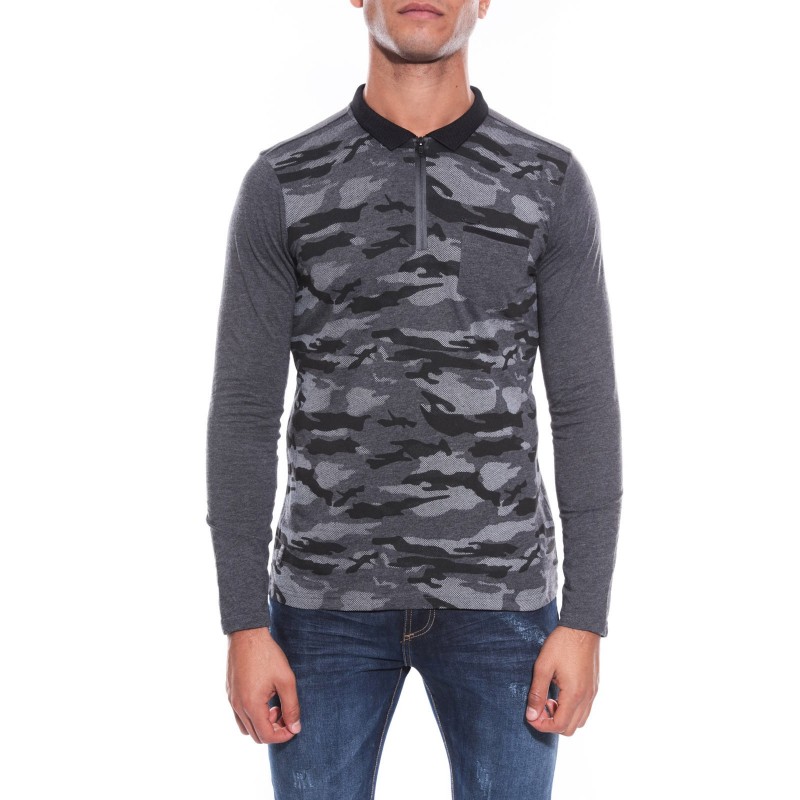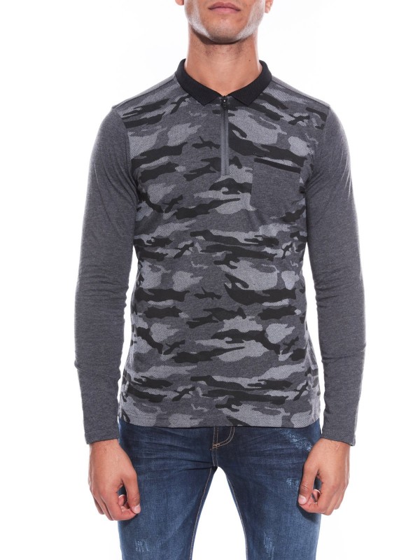 Polo manches longues à col zippé. Motif camouflage sur l'avant, et manches unies. Poche plaquée sur la poitrine. 100% coton. Lavage en machine à 30°