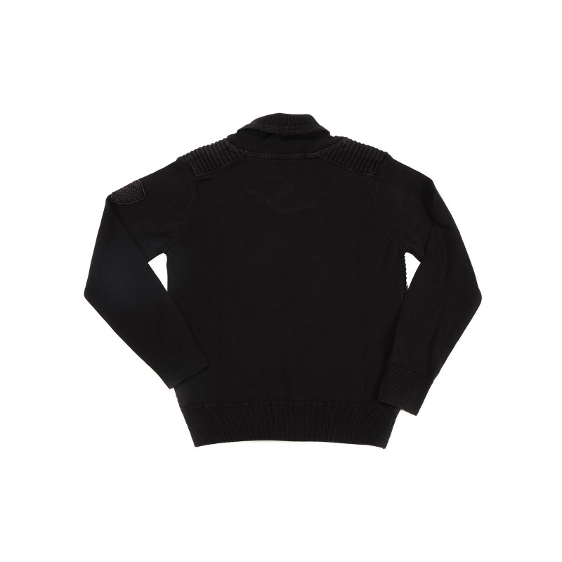 Pull col chale uni pur coton. Joli mélange de mailles avec effet raglan. Ecusson siglé Ritchie sur manche gauche. Finitions bords cotes. 100% coton. Lavage en machine à 30°.