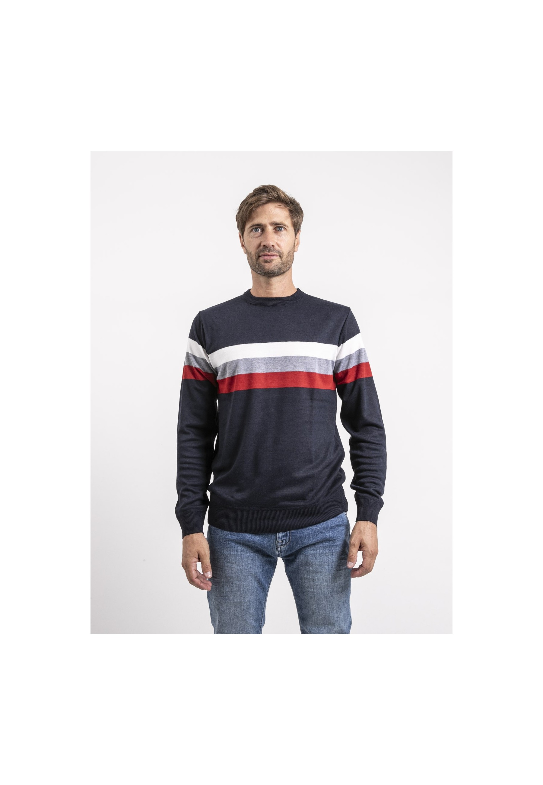 Ce pull en maille à bandes apporte une touche moderne à un classique de l'hiver. Il offre une silhouette soignée et élégante, idéale pour être portée avec un jean ou un pantalon chino. Son confort et sa légèreté en font un allié parfait pour les journées fraîches. Un indispensable à associer à des tenues casual ou plus formelles.